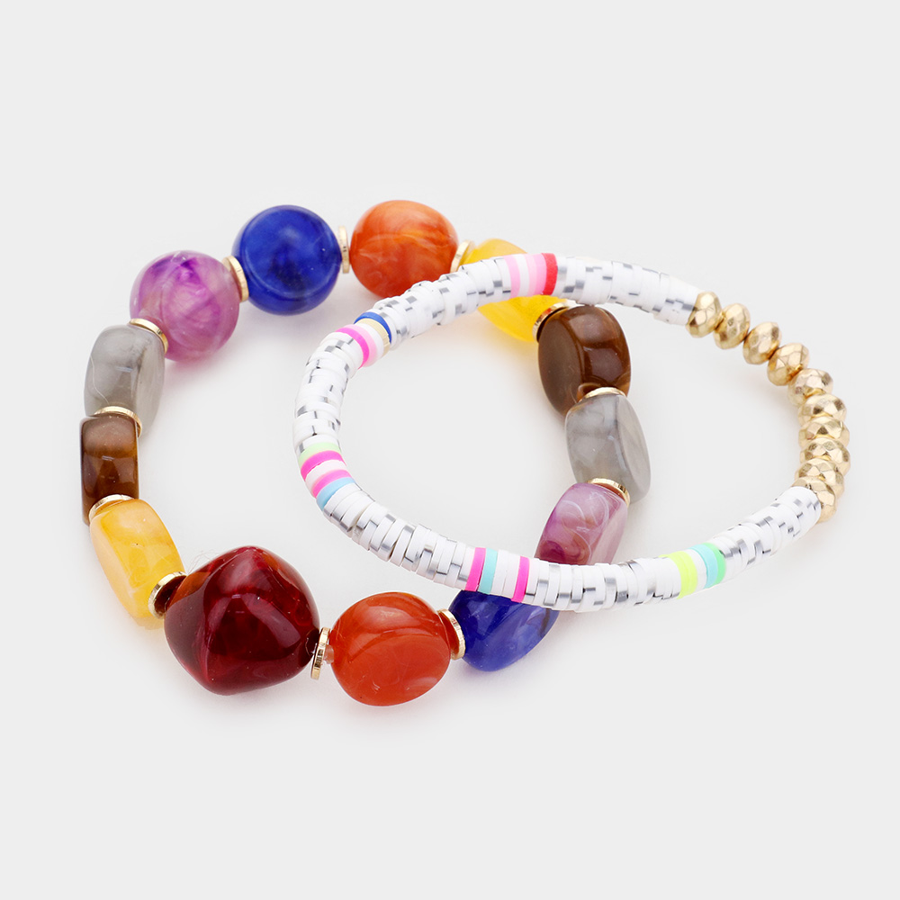 2PCS - Colorful Stone Disc Bead Metal Stretch Bracelets