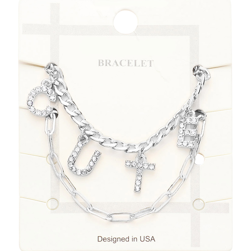 2PCS - CUTE Rhinestone Embellished Metal Chain Bracelets