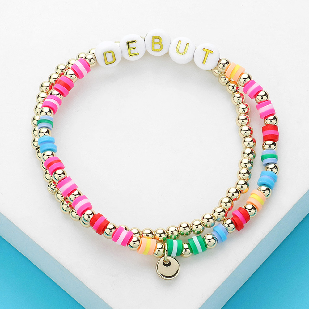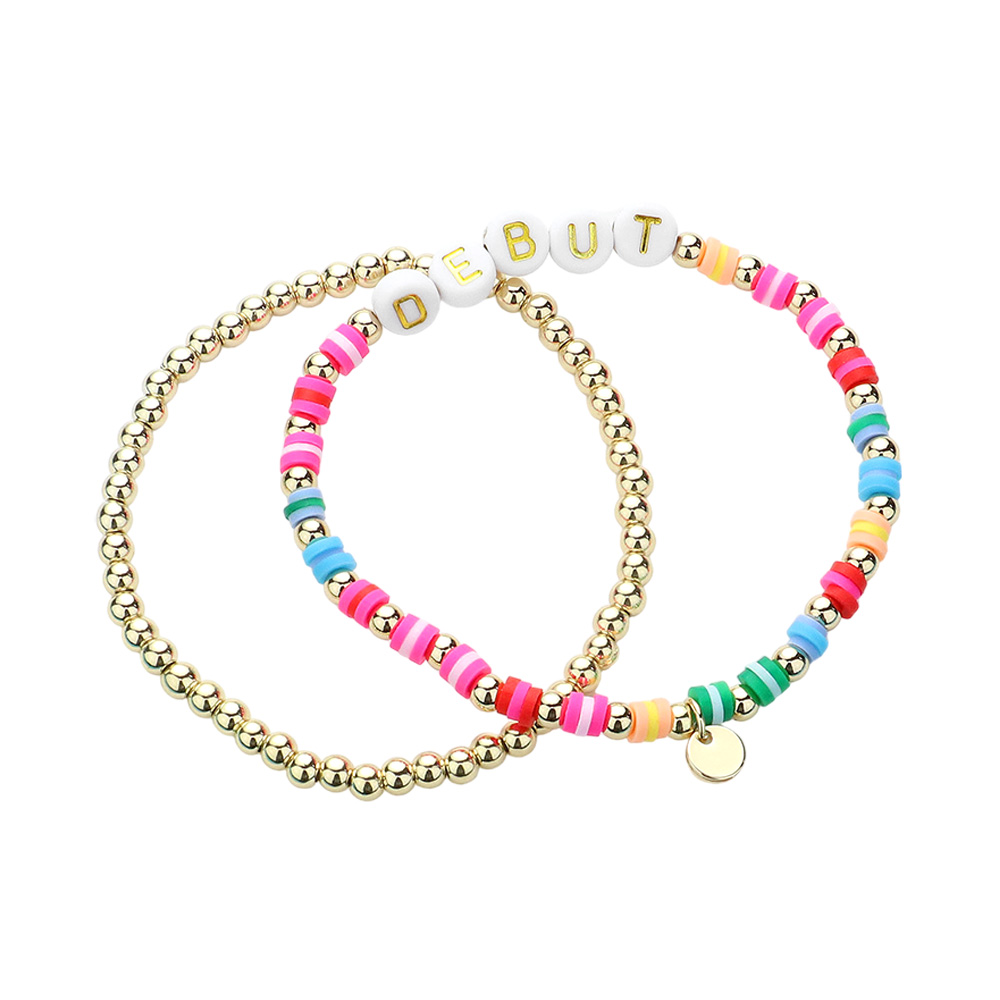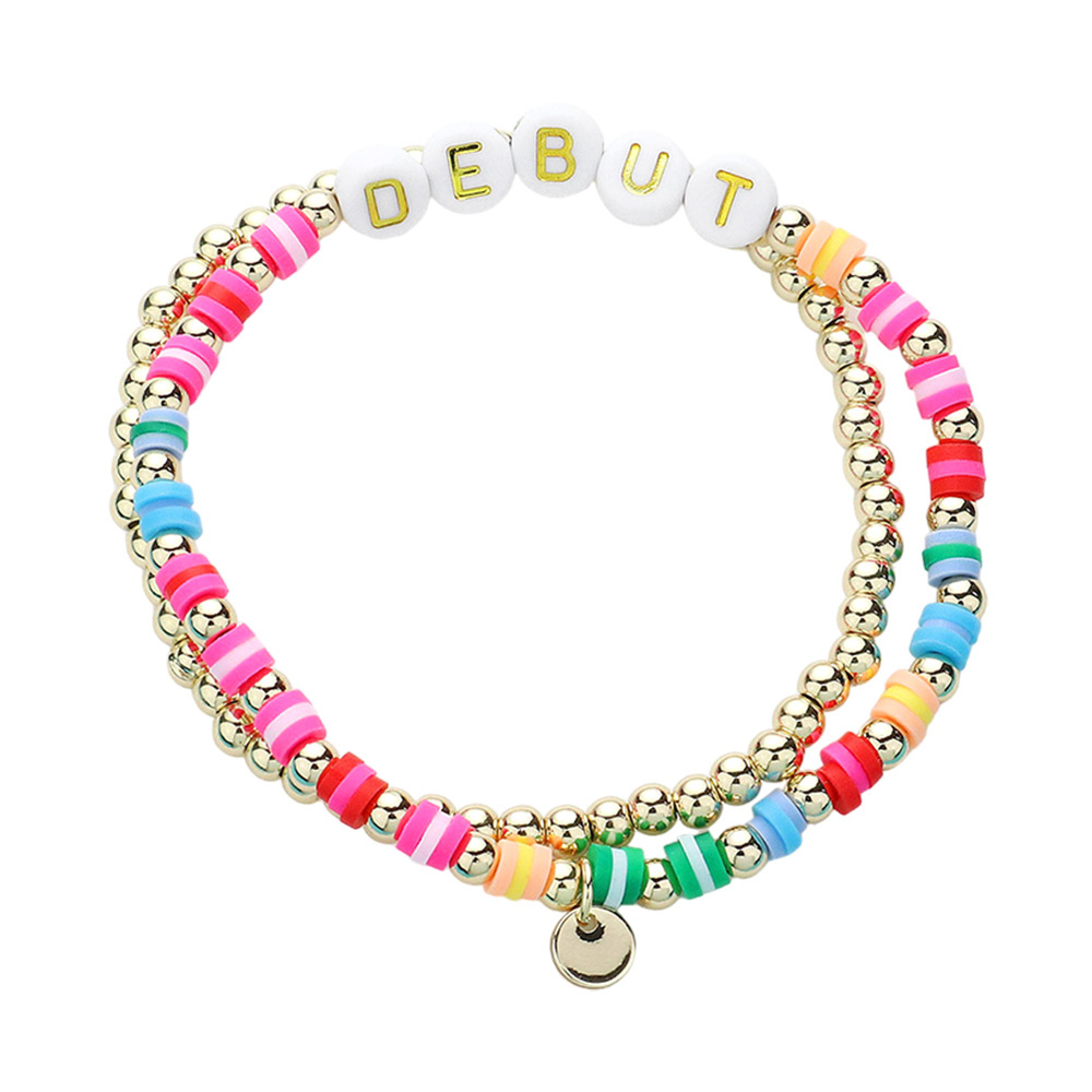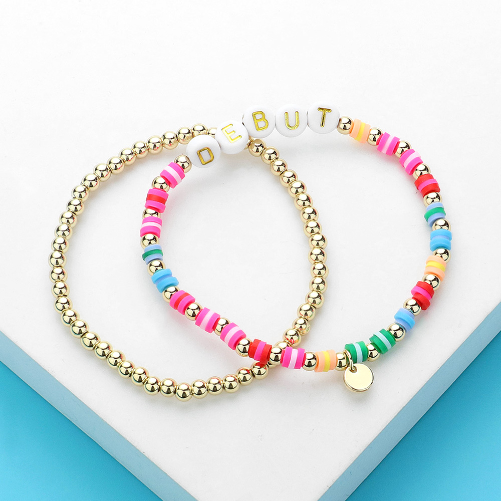 2PCS - DEBUT Message Metal Ball Heishi Beaded Stretch Multi Layered Bracelets