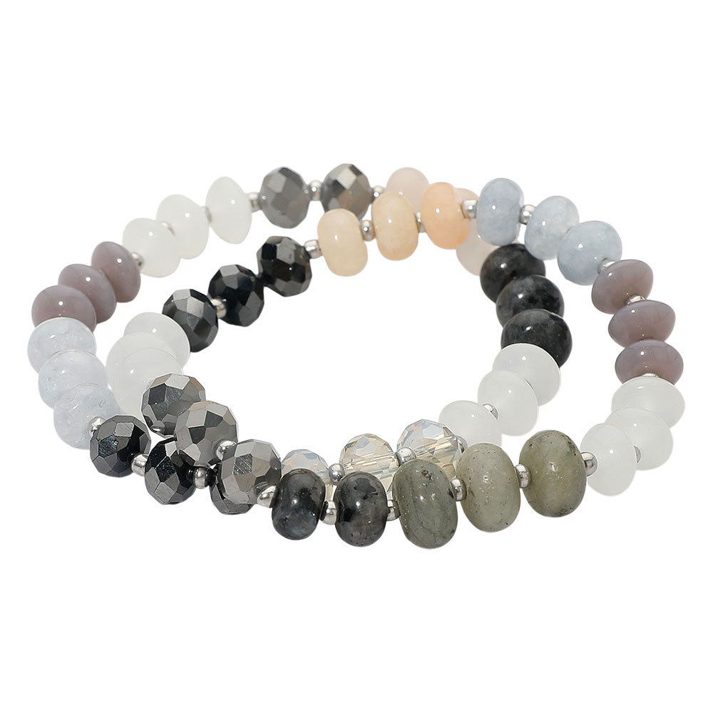 2PCS - Faceted Pebble Beaded Stretch Multi Layered Bracelets
