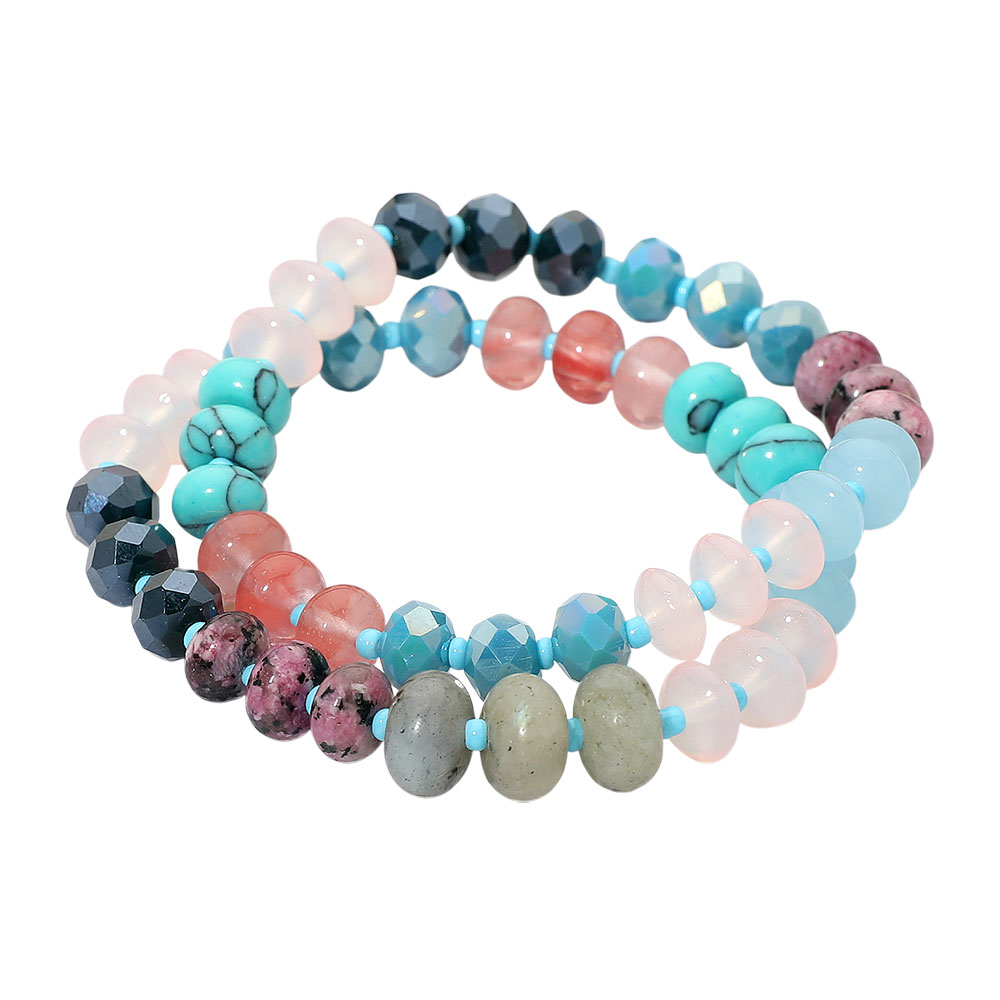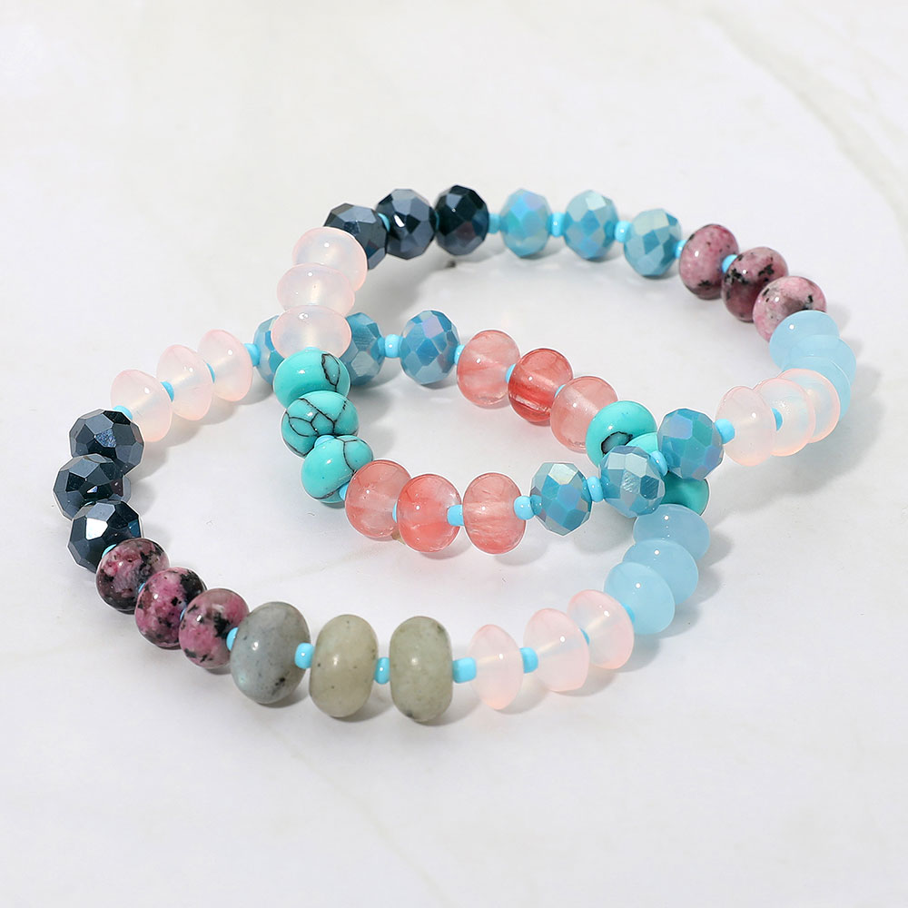 2PCS - Faceted Pebble Beaded Stretch Multi Layered Bracelets