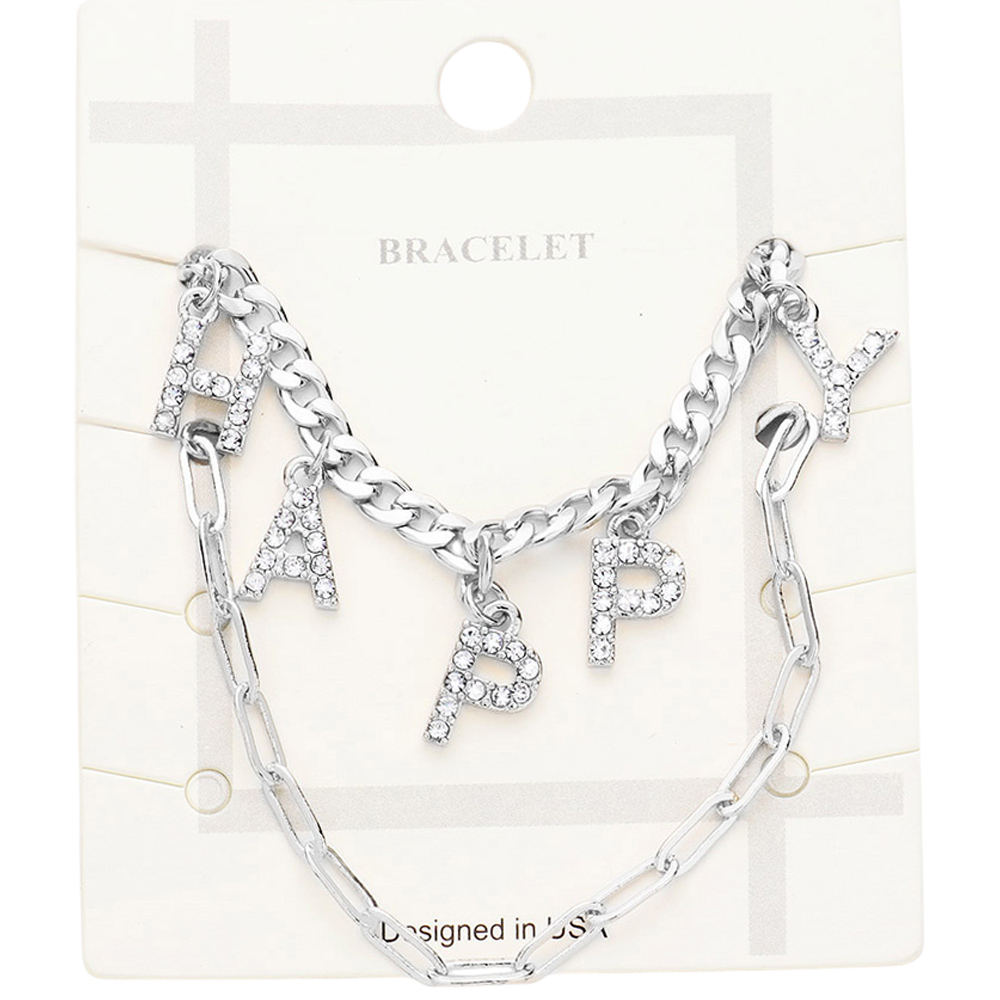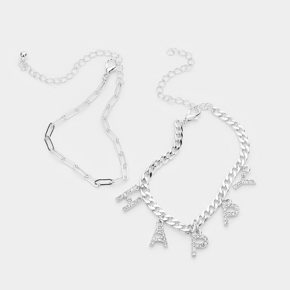 2PCS - HAPPY Rhinestone Embellished Metal Chain Bracelets