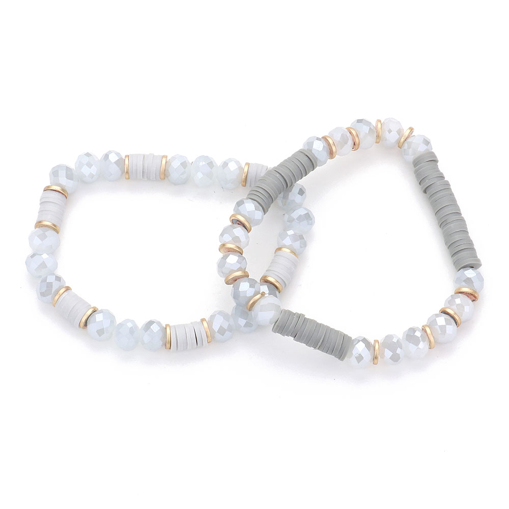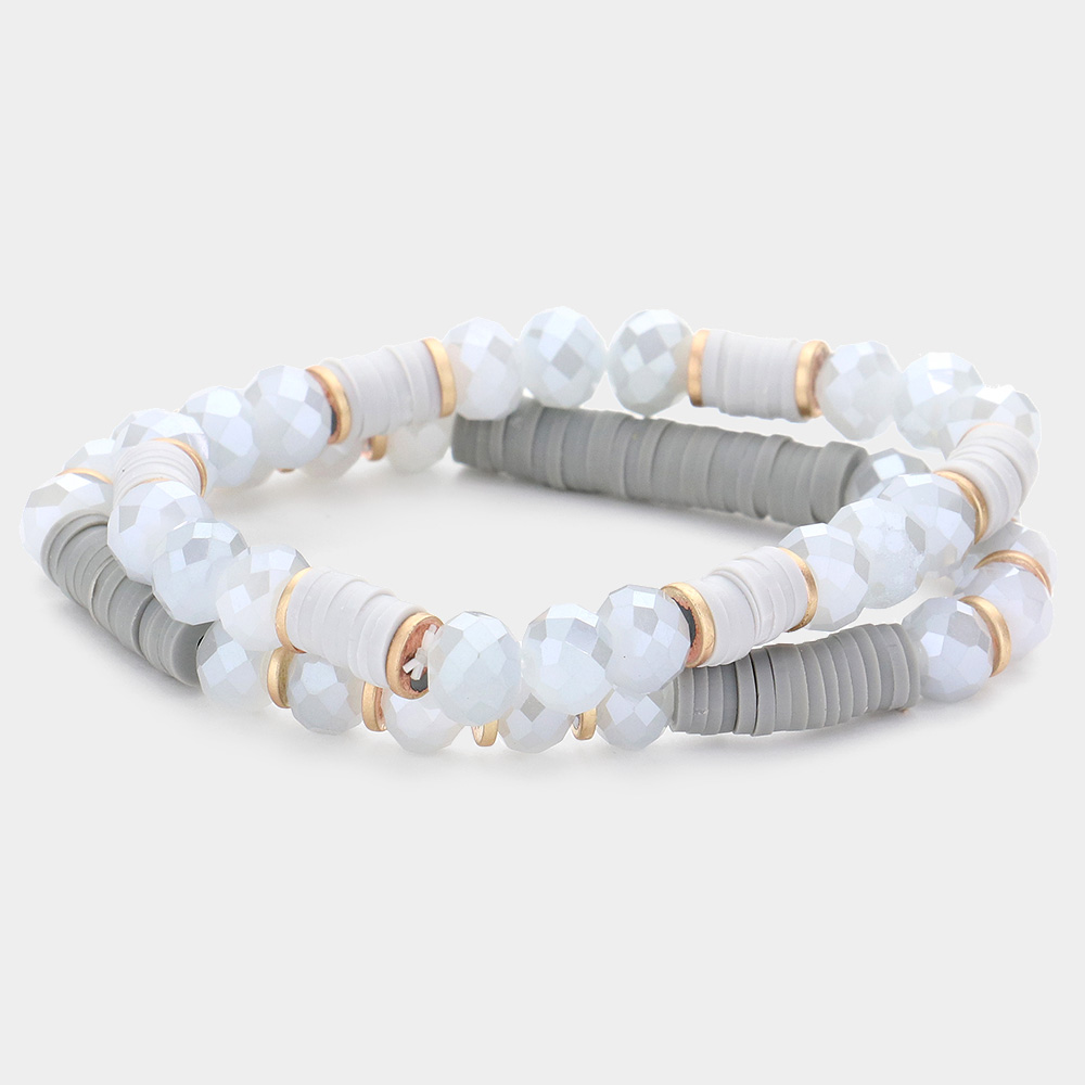 2PCS - Heishi Faceted Beaded Stretch Bracelets