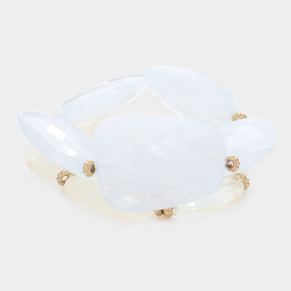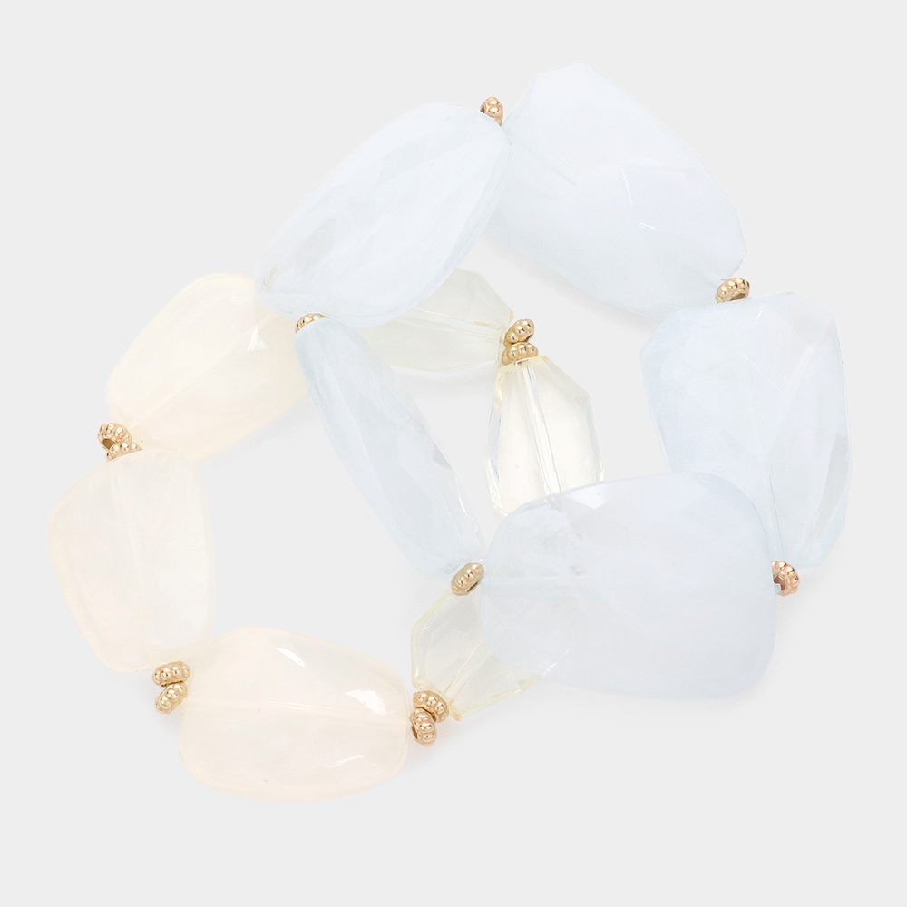 Metallic Accent Marbled Pebble Beaded Stretch Bracelet