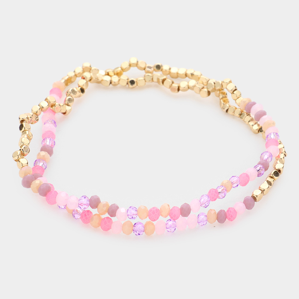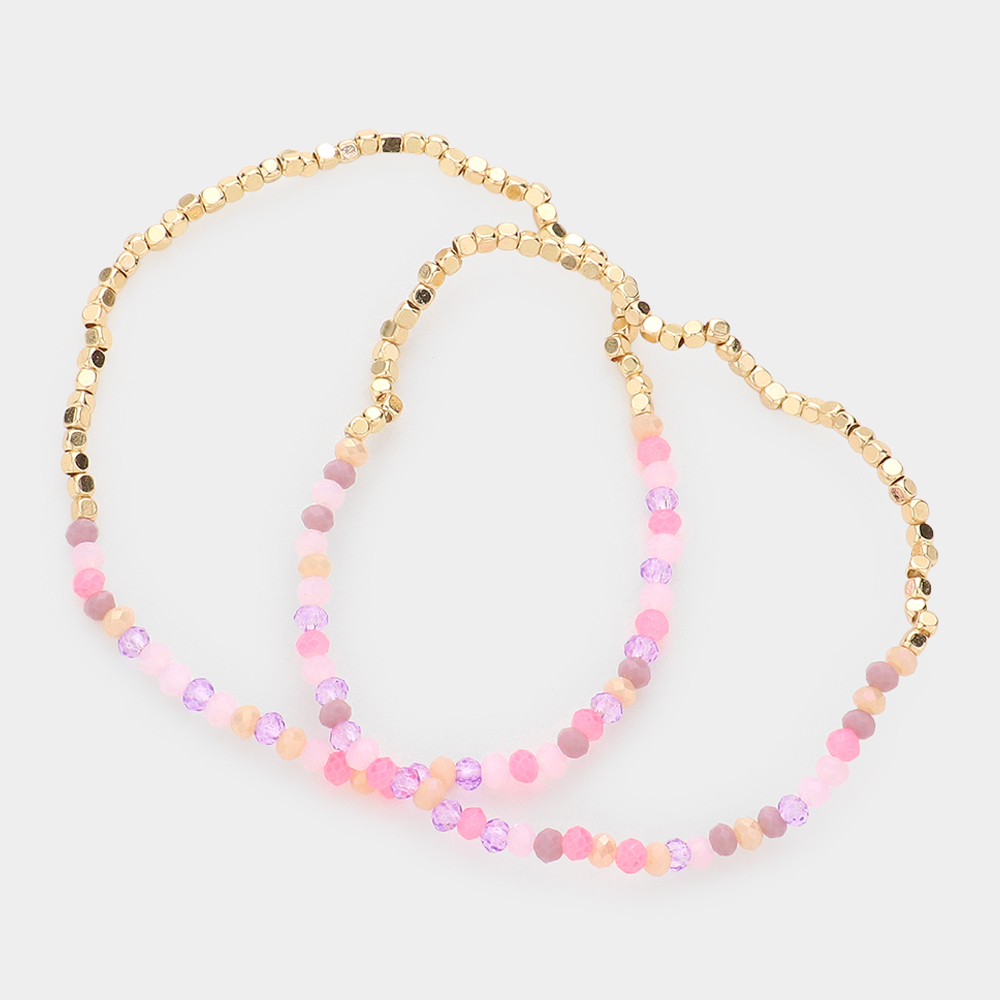 2PCS - Metal Cube Faceted Beaded Stretch Bracelets