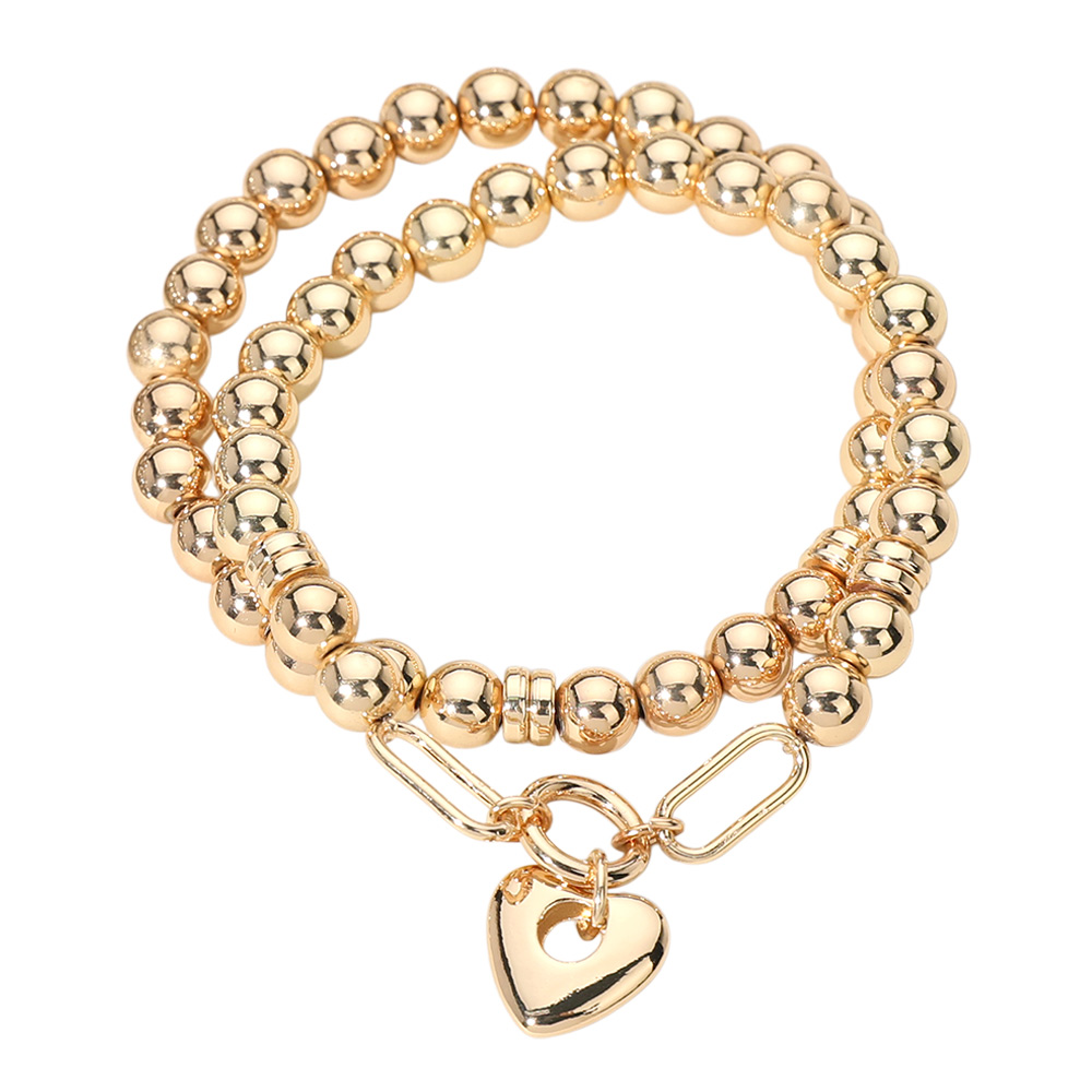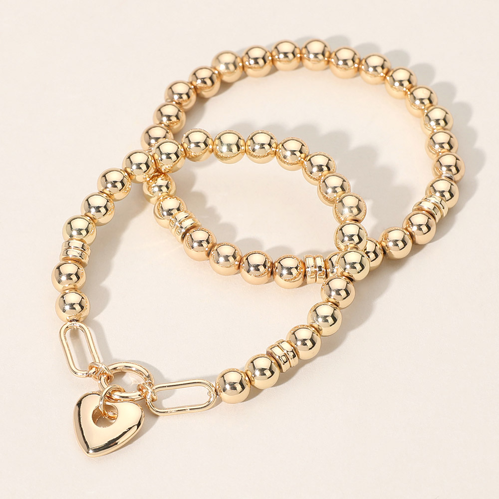 Details • Size : 0.5" H • Charm Size : 0.6" X 0.6" • Double strand bracelet set with polished beads and heart charm accent. Stretch design ensures comfort and effortless wear. A sweet and stylish touch for everyday elegance or layered looks. • Lead and Nickel Compliant