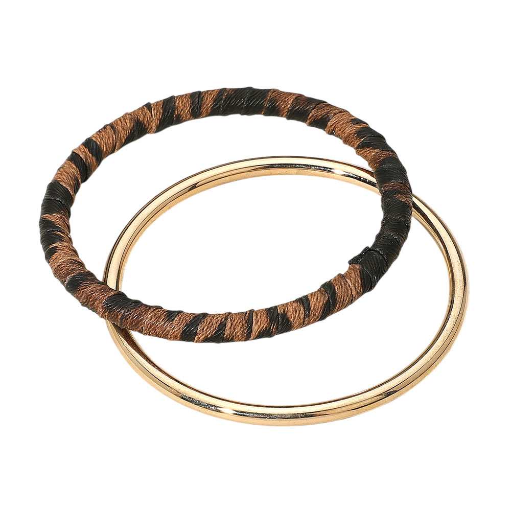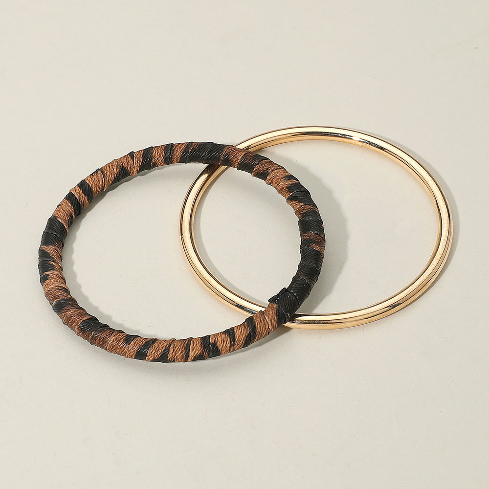 2PCS - Metal Leopard Fabric Covered Bangle Layered Bracelets 2PCS - Metal Leopard Fabric Covered Bangle Layered Bracelets 2PCS - Metal Leopard Fabric Covered Bangle Layered Bracelets