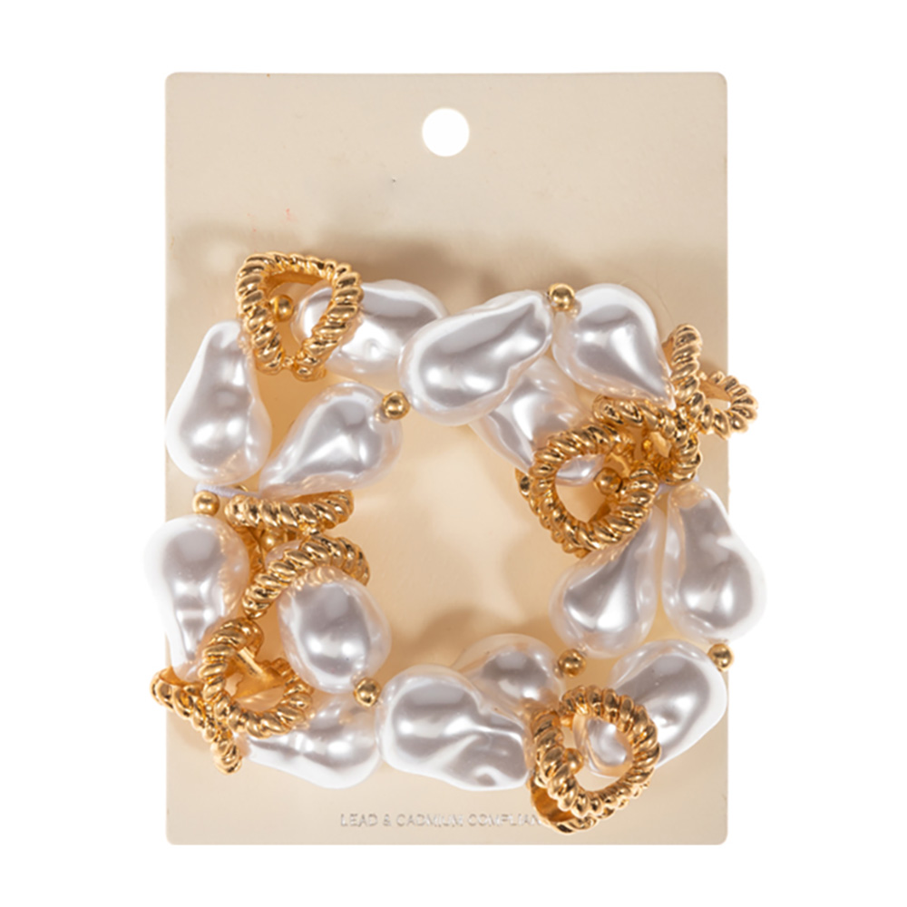 3PCS - Pearl Ceramic Metal Ball Beaded Stretch Multi Layered Bracelets