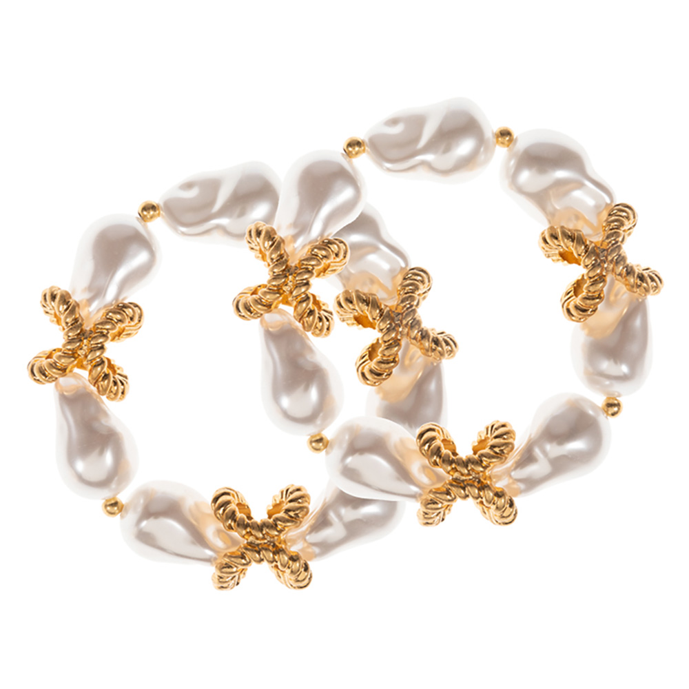 2PCS - Metal Rope Pearl Beaded Stretch Multi Layered Bracelets