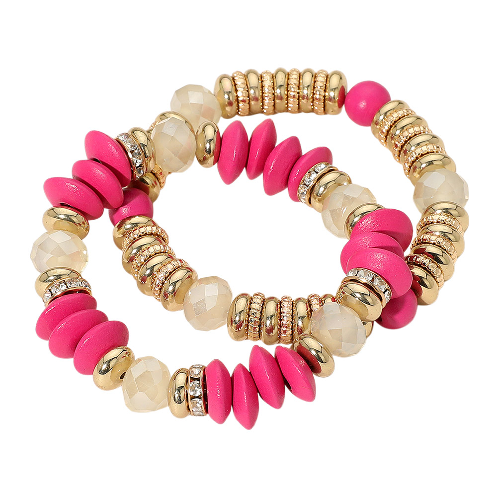 Details • Size : 0.9" H • Stretchable • Elevate your accessory game with this 2-piece bracelet set featuring faceted beads, textured spacers, and rhinestone accents. A stylish addition to your everyday or evening wardrobe. • Lead and Nickel Compliant