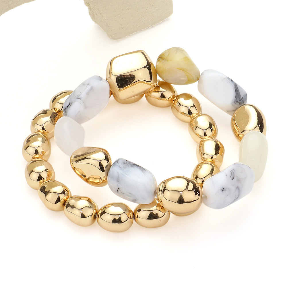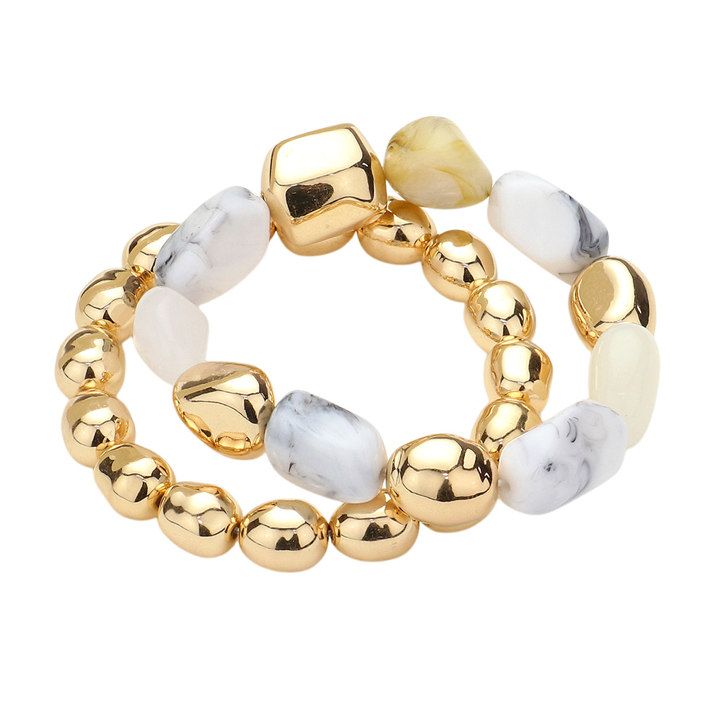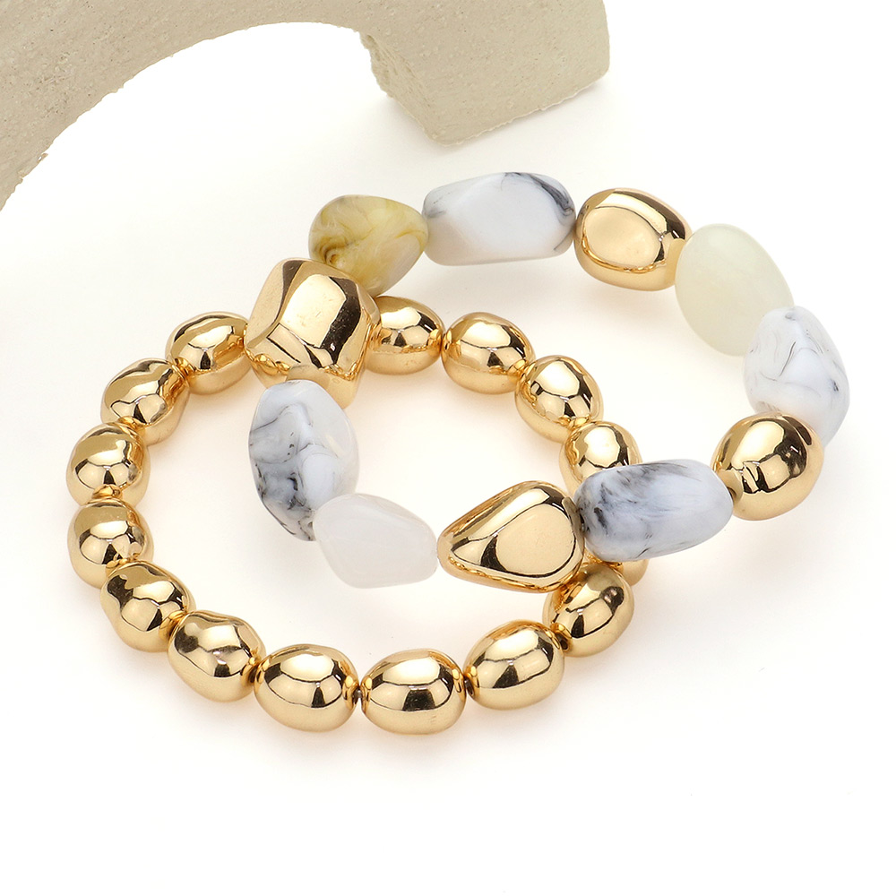 2PCS - Natural Pebble Stone Metal Ball Beaded Stretch Layered Bracelets 2PCS - Natural Pebble Stone Metal Ball Beaded Stretch Layered Bracelets 2PCS - Natural Pebble Stone Metal Ball Beaded Stretch Layered Bracelets 2PCS - Natural Pebble Stone Metal Ball Beaded Stretch Layered Bracelets