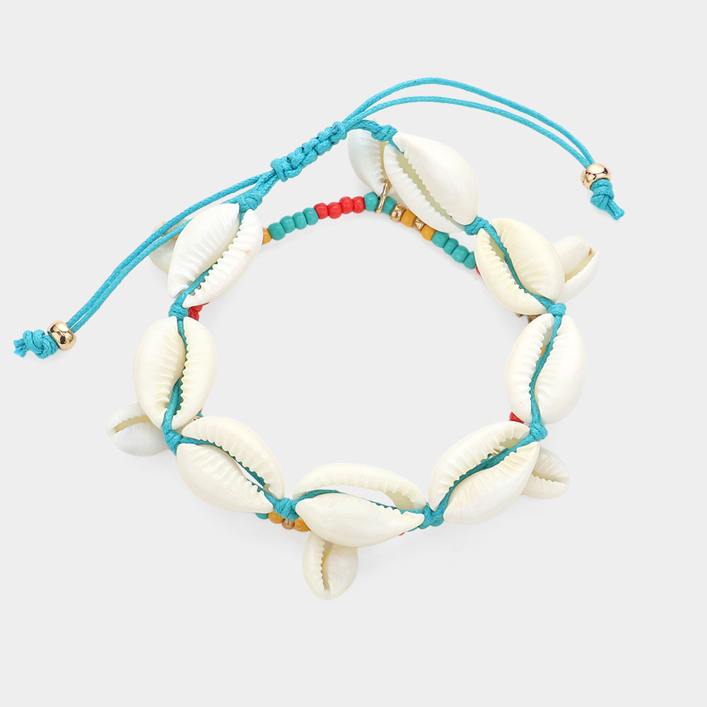 2PCS - Puka Shell Beaded Cinch Pull Tie Beaded Stretch Bracelets