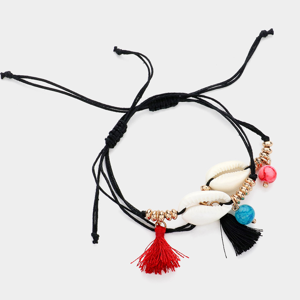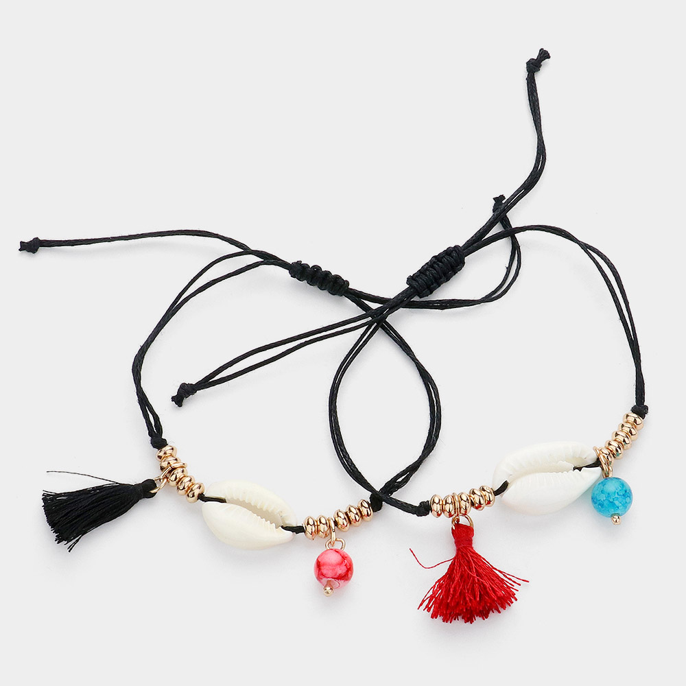 2PCS - Puka Shell Tassel Pointed Cinch Pull Tie Bracelets