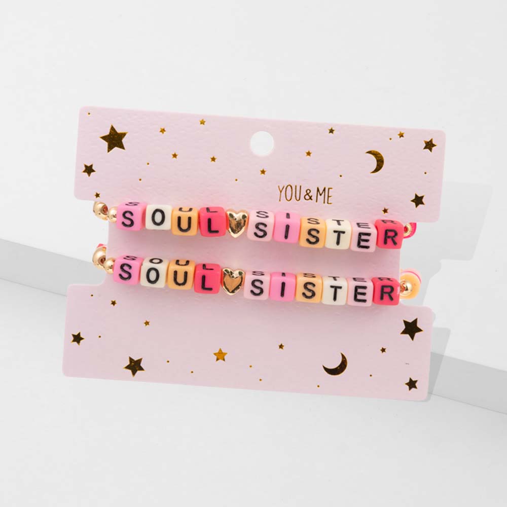 2PCS - SOUL SISTER Star Heart Heishi Beaded Stretch Bracelets