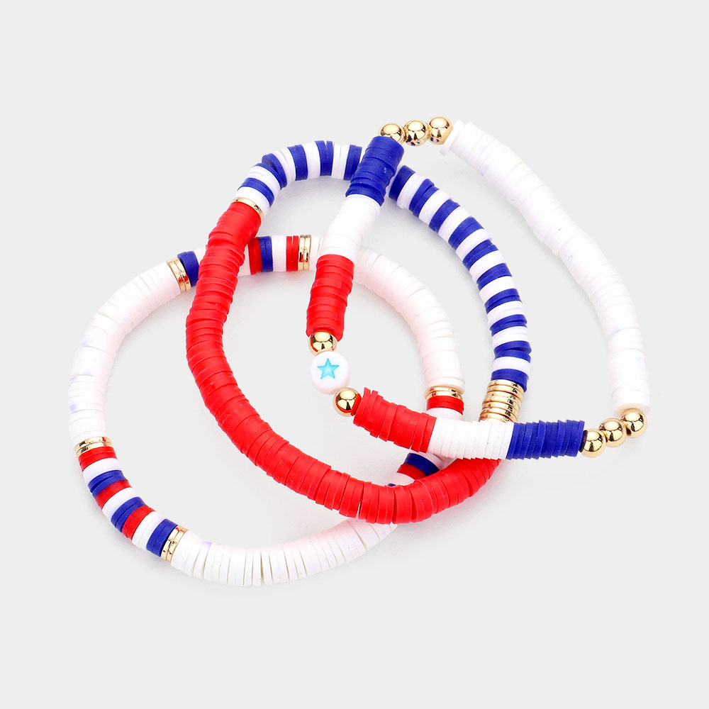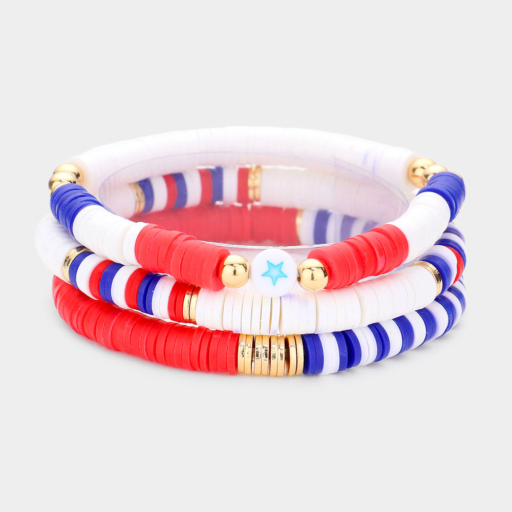 3PCS - American USA Flag Heishi Beads Multi Layered Bracelets