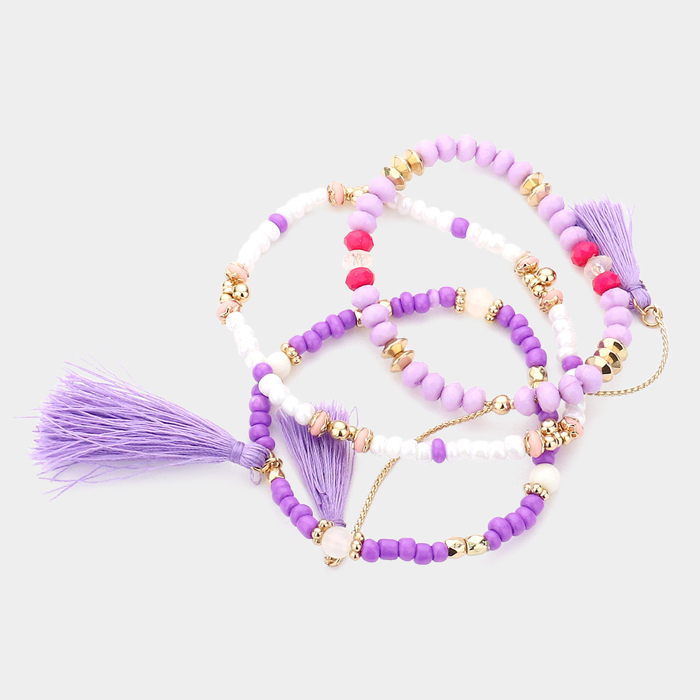 Houndstooth Patterned Beaded Tassel Keychain / Bracelet