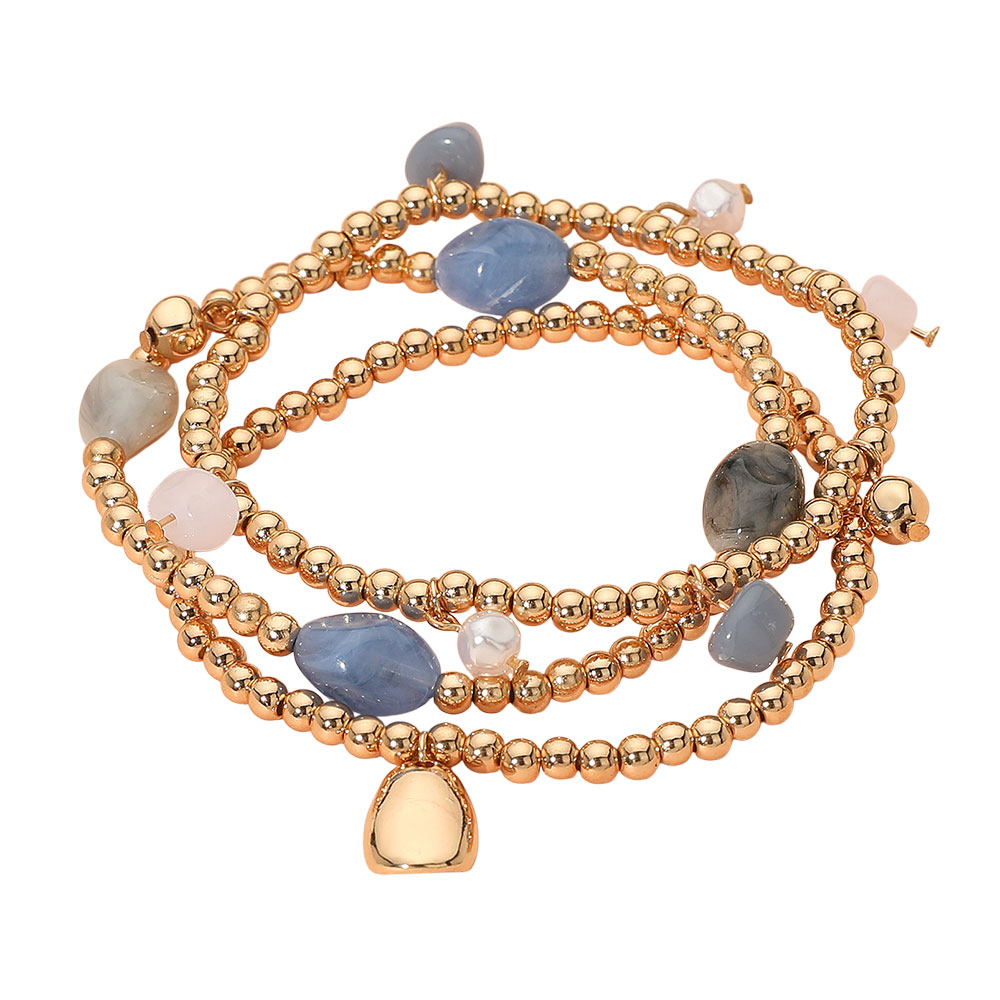 Details • Size : 1" H • Stretchable • This beaded stretch bracelet set features polished metallic beads accented with smooth gemstone-style details and dangling charms. Perfect for stacking or wearing solo, it adds a touch of playful elegance to both casual and dressy outfits. • Lead and Nickel Compliant