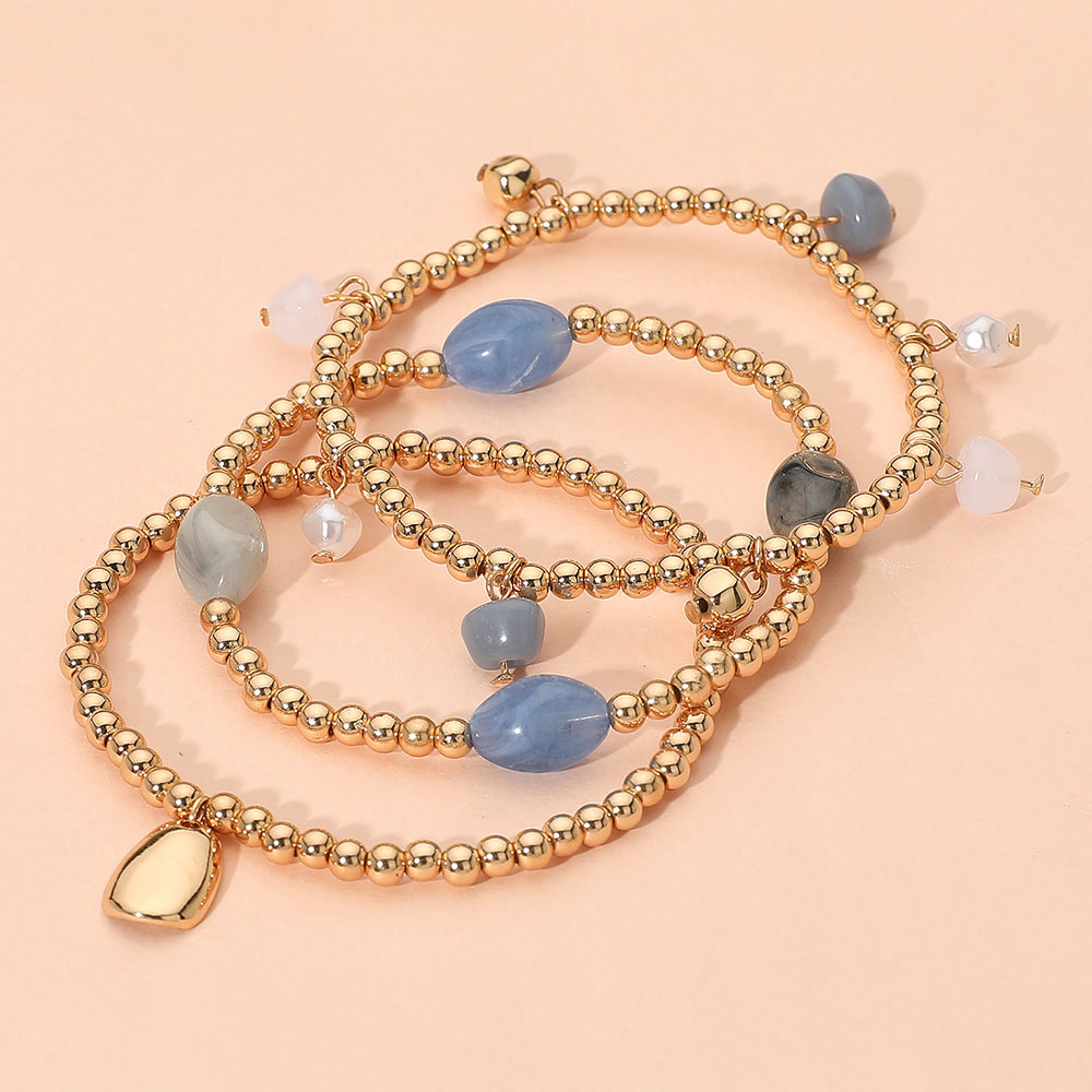 3PCS - Beads Pearl Charm Beaded Stretch Multi Layered Bracelets