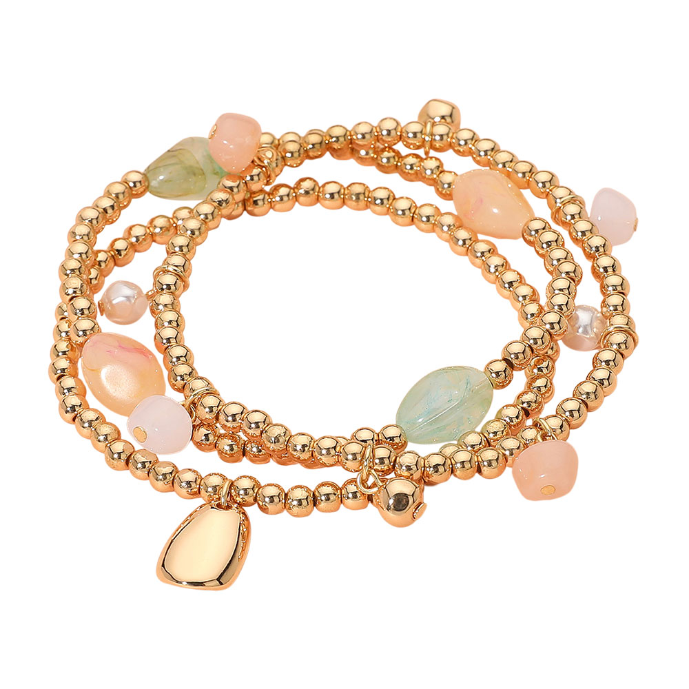 3PCS - Beads Pearl Charm Beaded Stretch Multi Layered Bracelets
