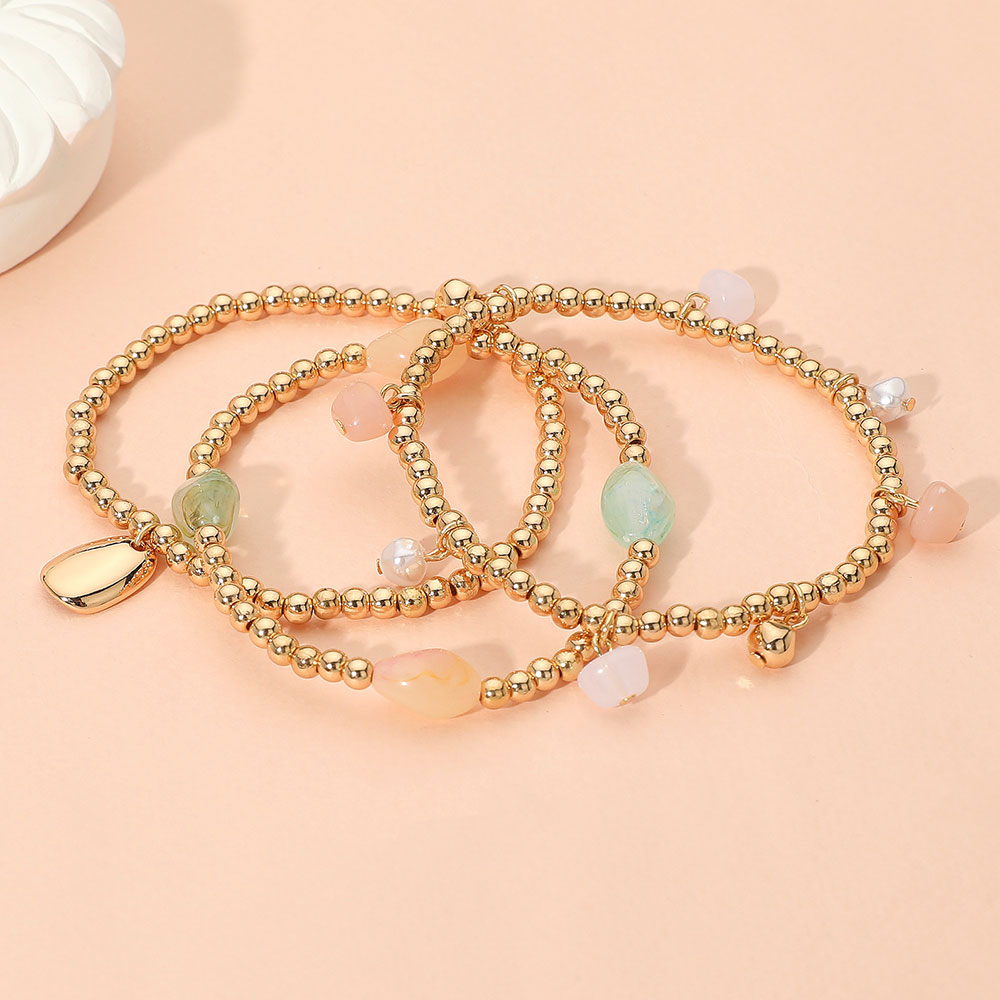 Details • Size : 1" H • Stretchable • This beaded stretch bracelet set features polished metallic beads accented with smooth gemstone-style details and dangling charms. Perfect for stacking or wearing solo, it adds a touch of playful elegance to both casual and dressy outfits. • Lead and Nickel Compliant