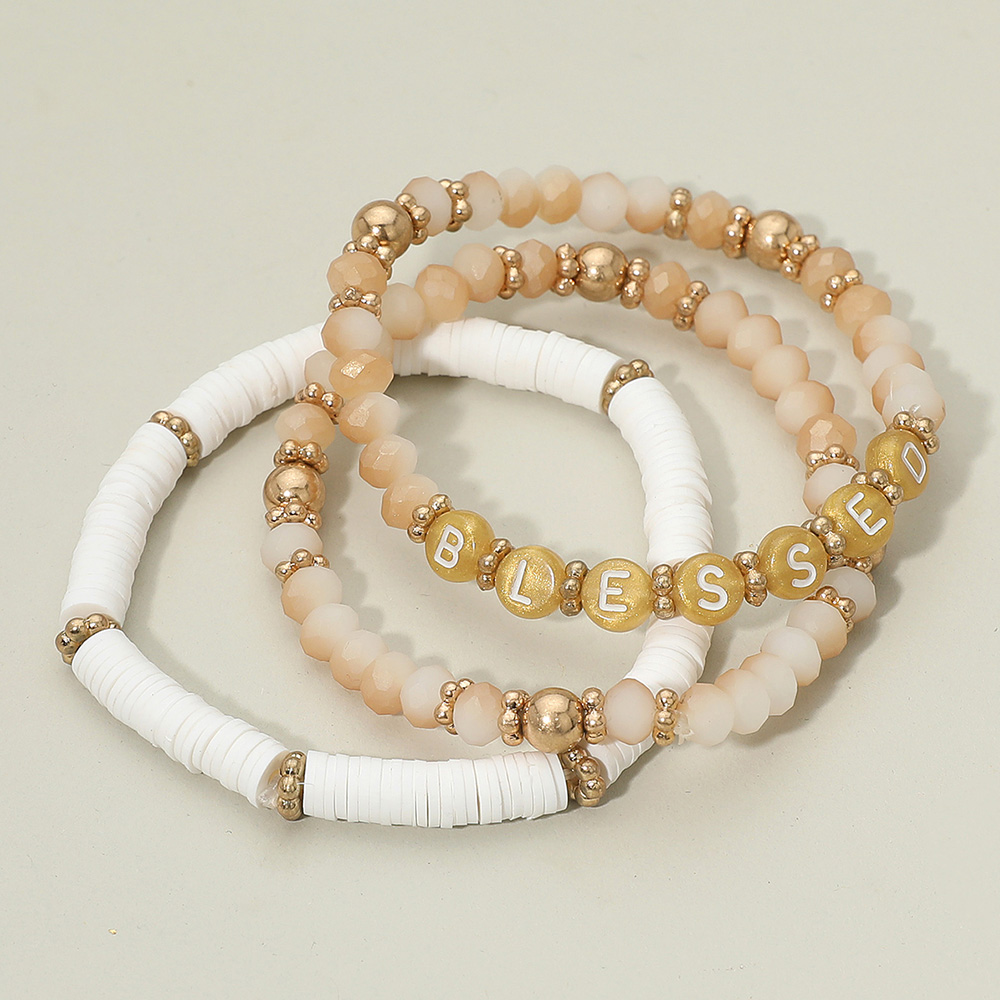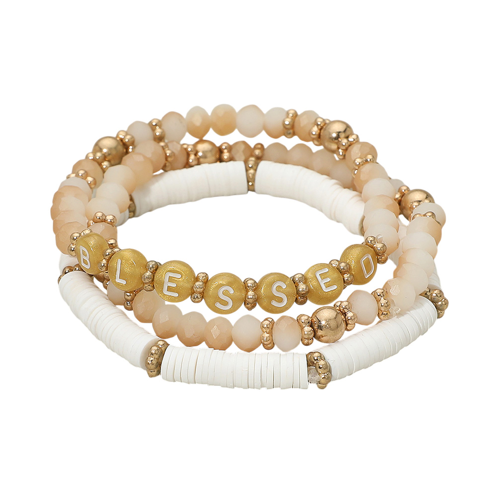 Details • Size : 0.75" H • Stretchable • This stackable bracelet set showcases layered beaded strands with a meaningful “BLESSED” charm accent. Designed with a versatile and comfortable fit, it blends style with inspiration, making it a thoughtful gift or everyday accessory that pairs beautifully with both casual and dressy looks. • Lead and Nickel Compliant