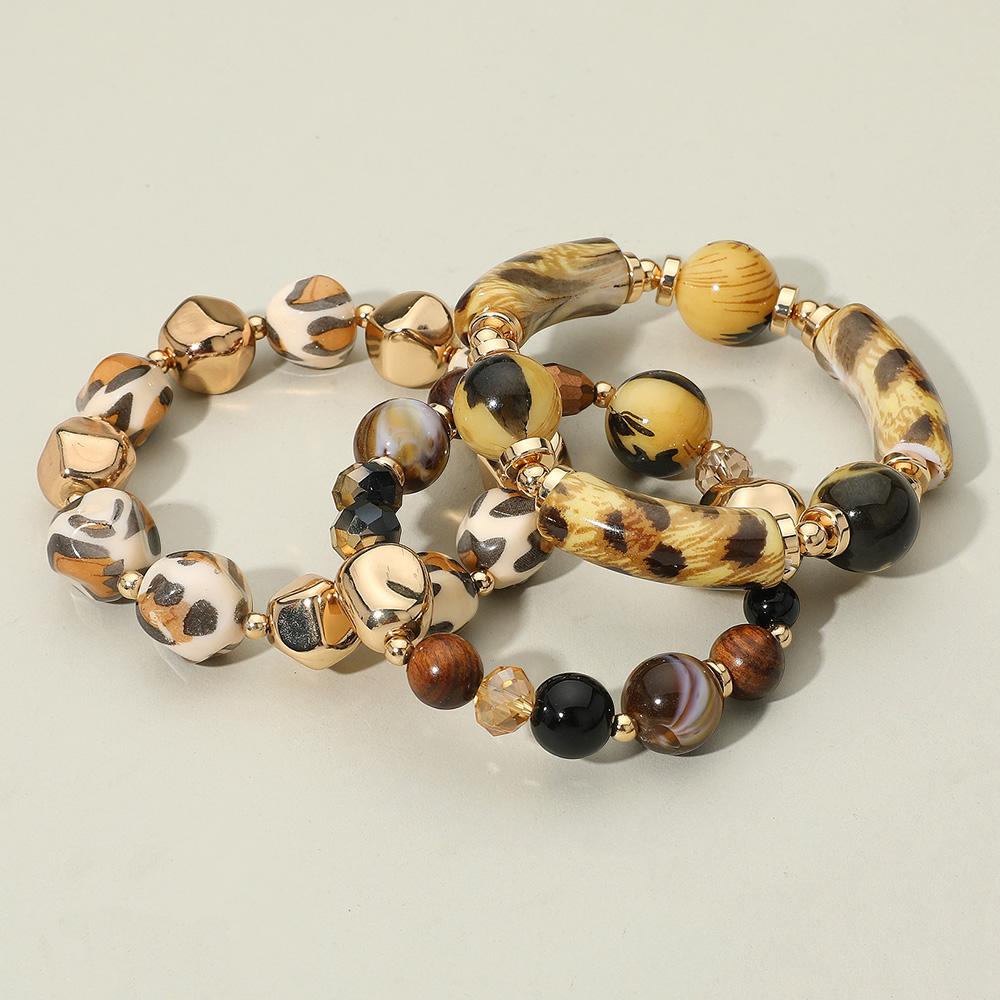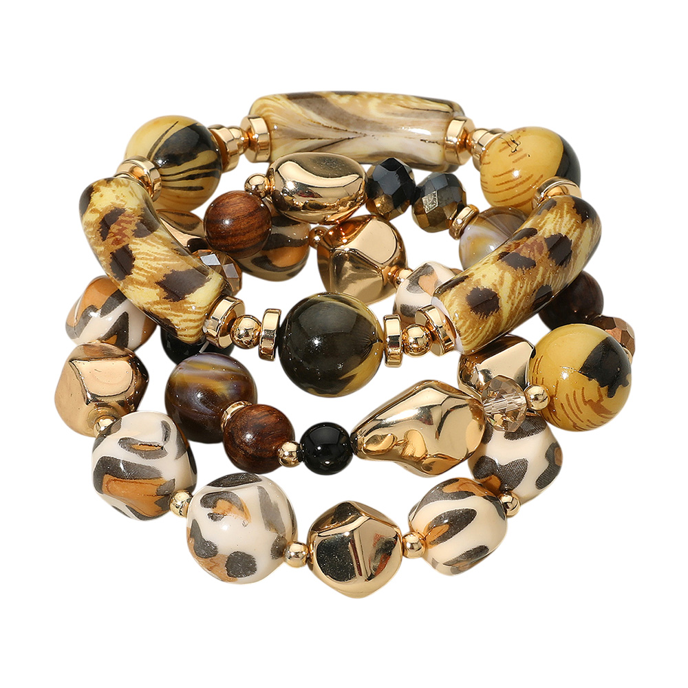 3PCS - Bold Animal Pattern Faceted Beaded Stretch Multi Layered Bracelets