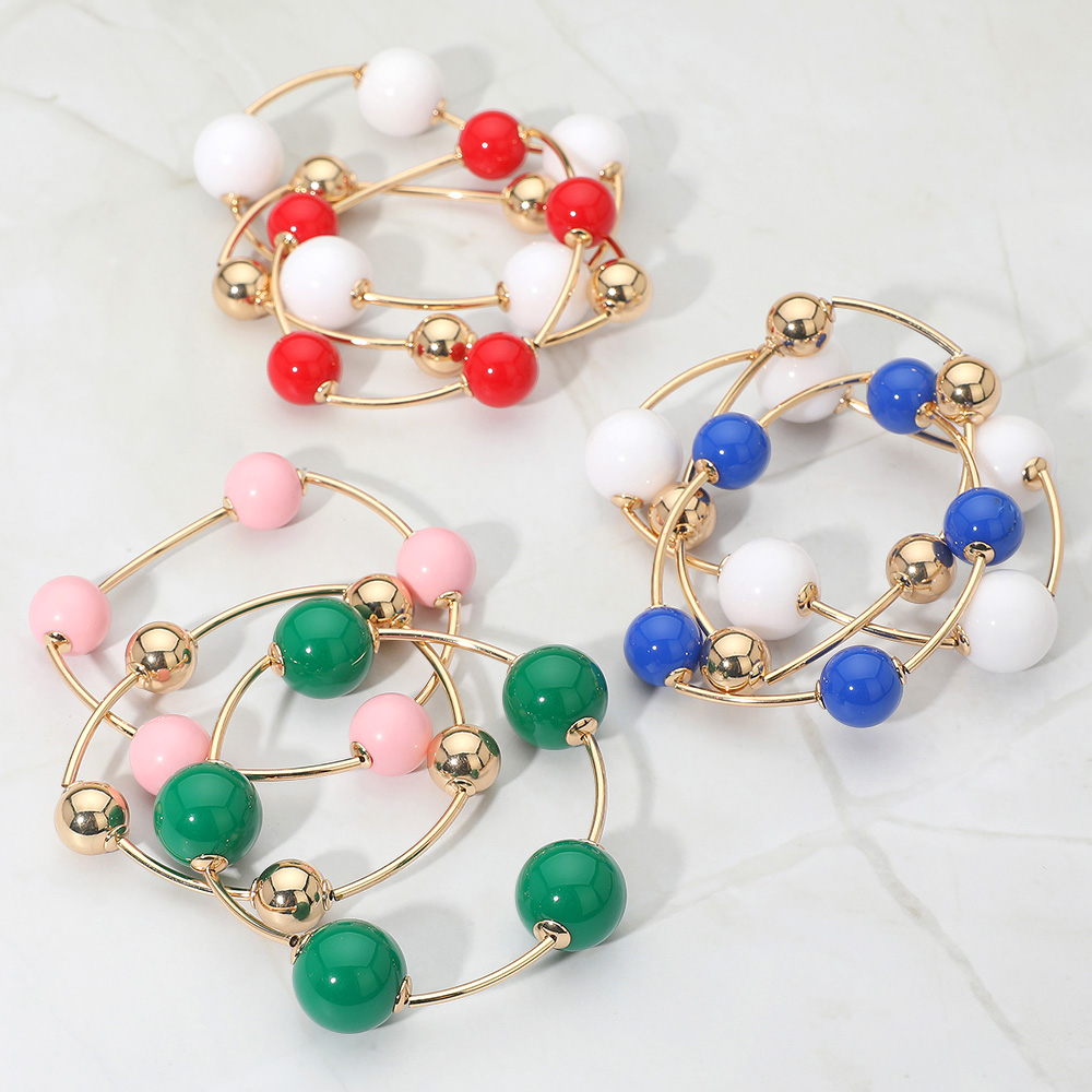 Details • Size : 1.75" H • Stretchable • Trendy bangle bracelet featuring bold round beads arranged on sleek bands for a playful and modern look. A fun statement piece that adds personality and charm to any outfit, perfect for stacking or wearing solo with stylish flair. • Lead and Nickel Compliant