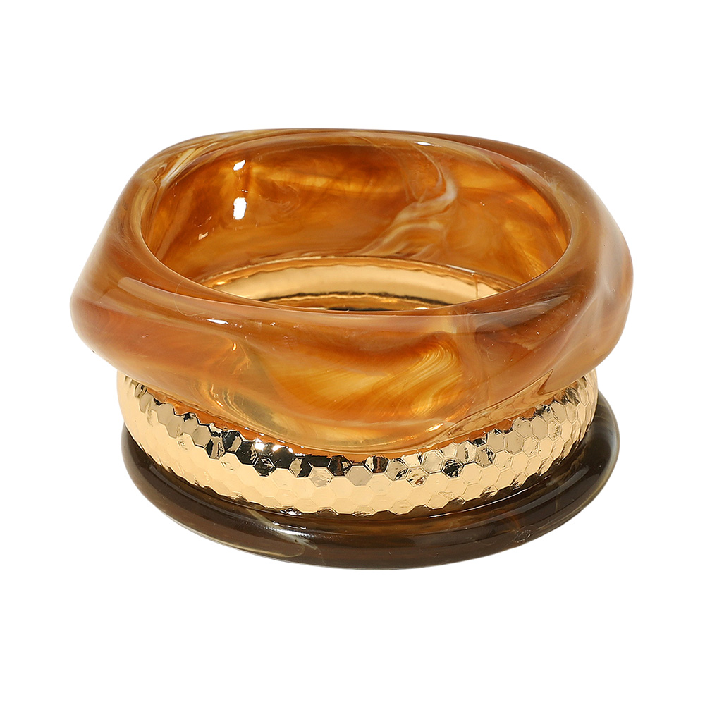 3PCS - Chunky Abstract Resin Hammered Metal Bangle Multi Layered Bracelets