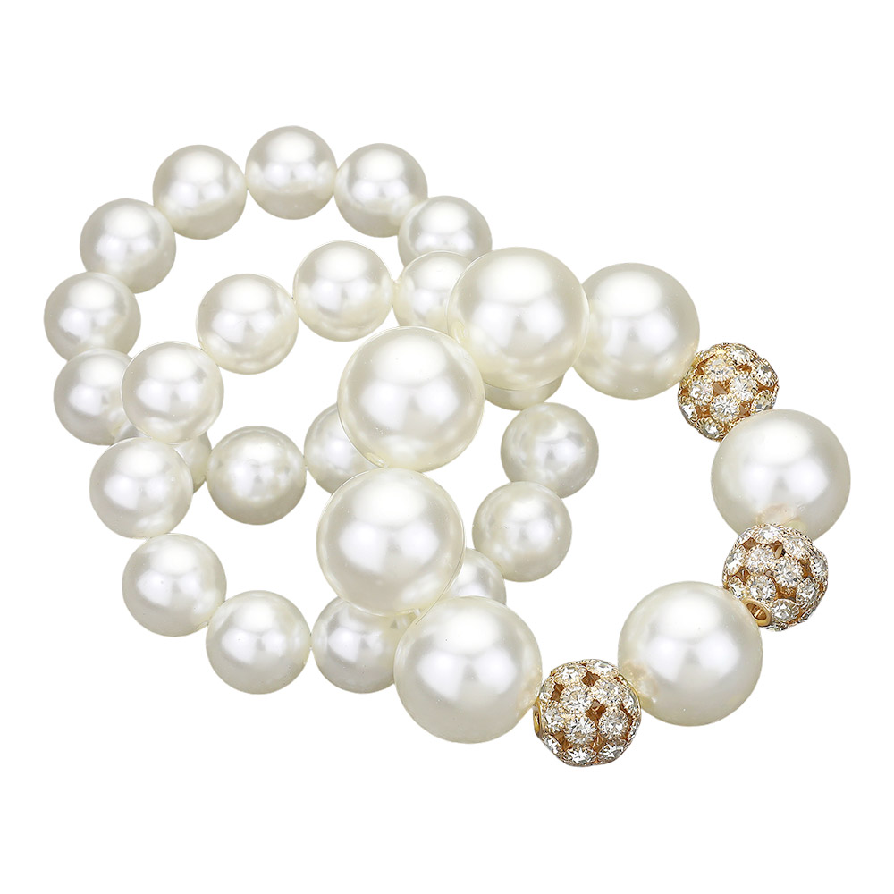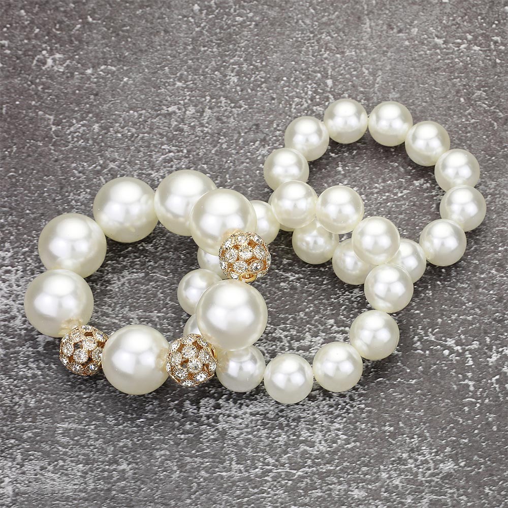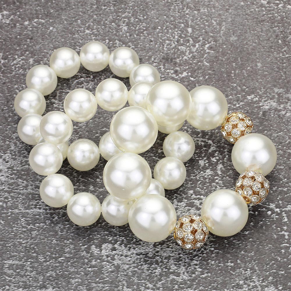 3PCS - Chunky Pearl Ball Beaded Stretch Multi Layered Bracelets