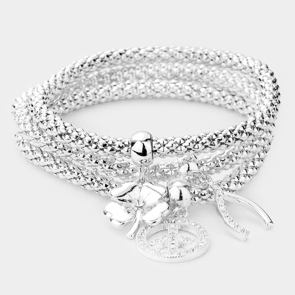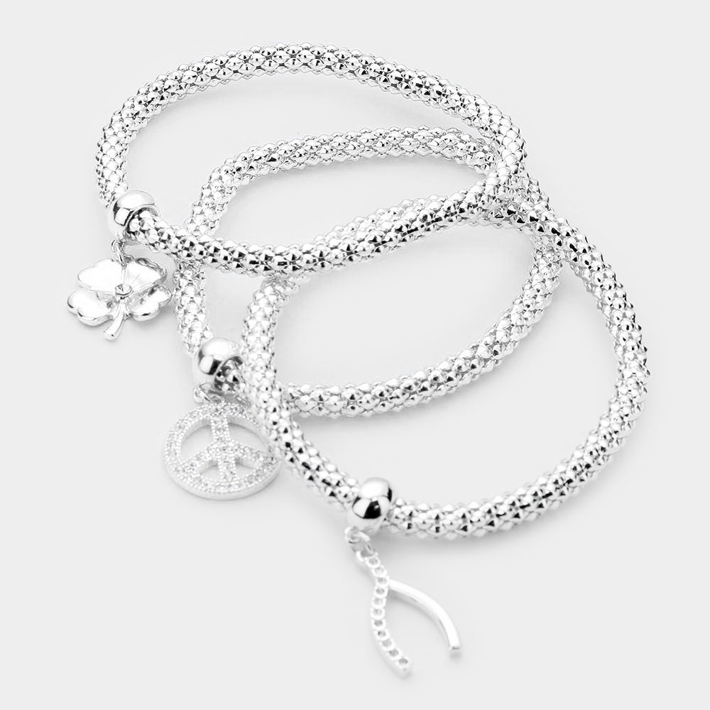 3PCS - Clover Peace Wishbone Charm Stretch Bracelets