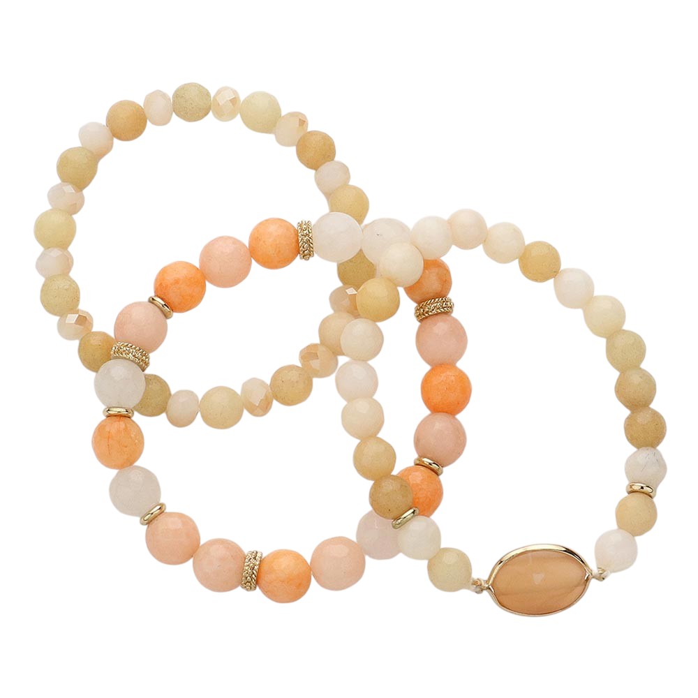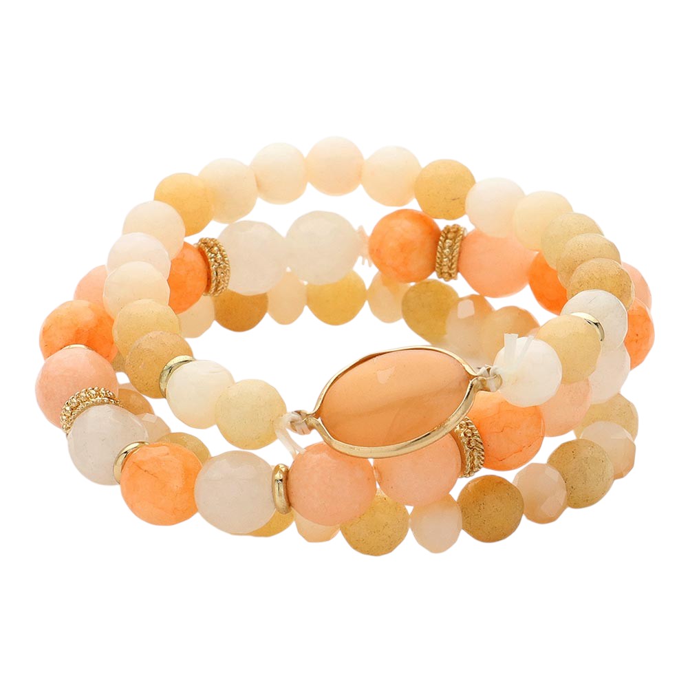 3PCS - Earthy Stone Beaded Stretch Multi Layered Bracelets