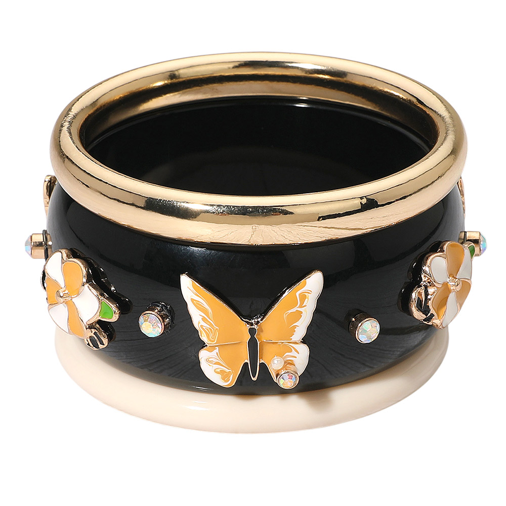 Details • Size : 2" H, 2.5" D • This charming bangle set showcases butterfly and floral accents arranged around smooth, sculpted bands for a playful yet elegant look. With its eye-catching details and dimensional design, it adds a touch of personality to both everyday outfits and dressy ensembles. • Lead and Nickel Compliant