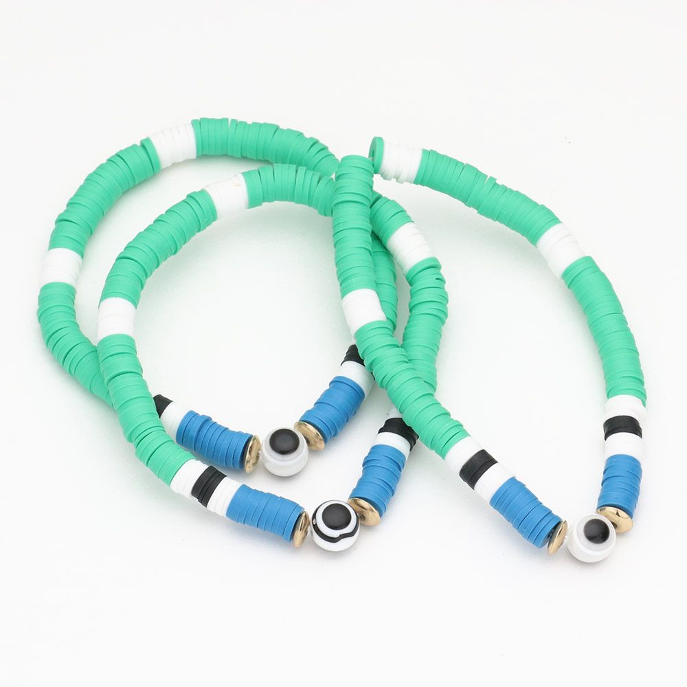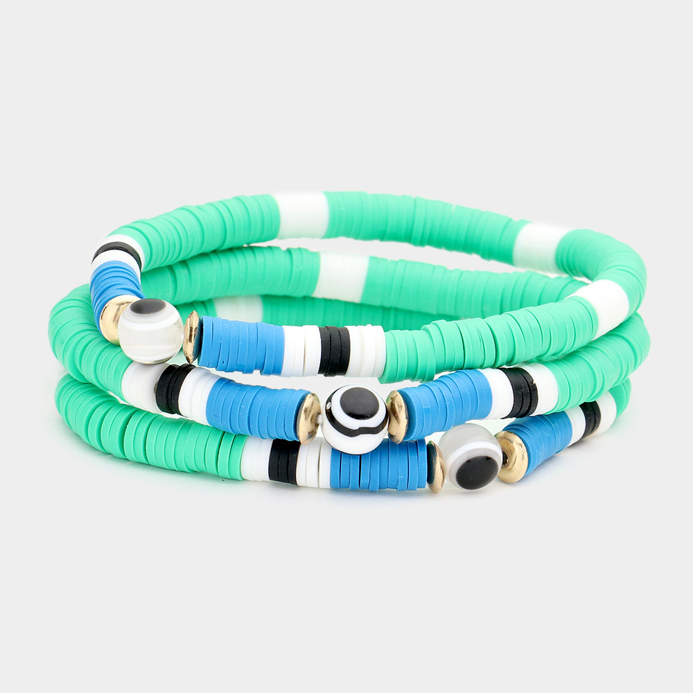 3PCS - Evil Eye Accented Heishi Beaded Stretch Bracelets