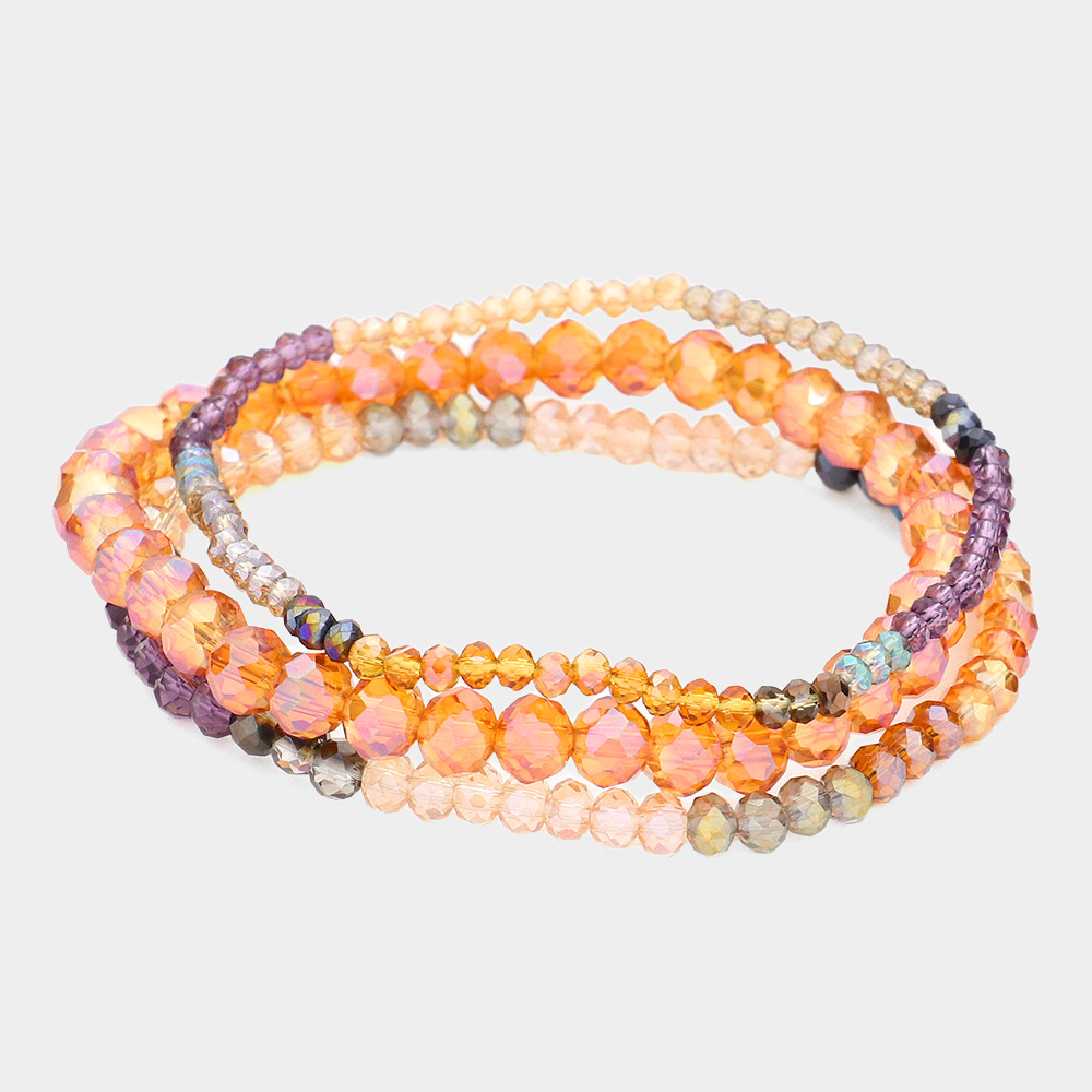 Metal Embossed Medal Square Stone Pearl Charm Rein Disc Beaded Stretch Bracelet
