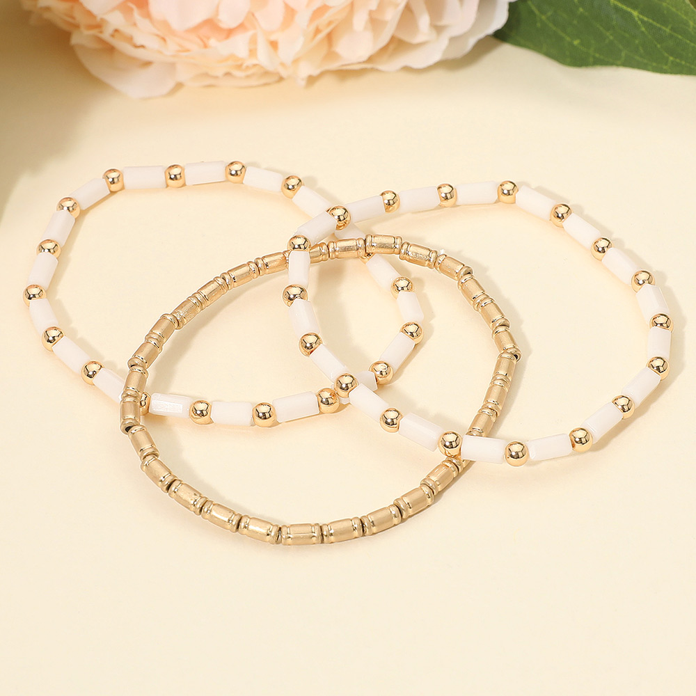 3PCS - Faceted Tube Beaded Stretch Multi Layered Bracelets