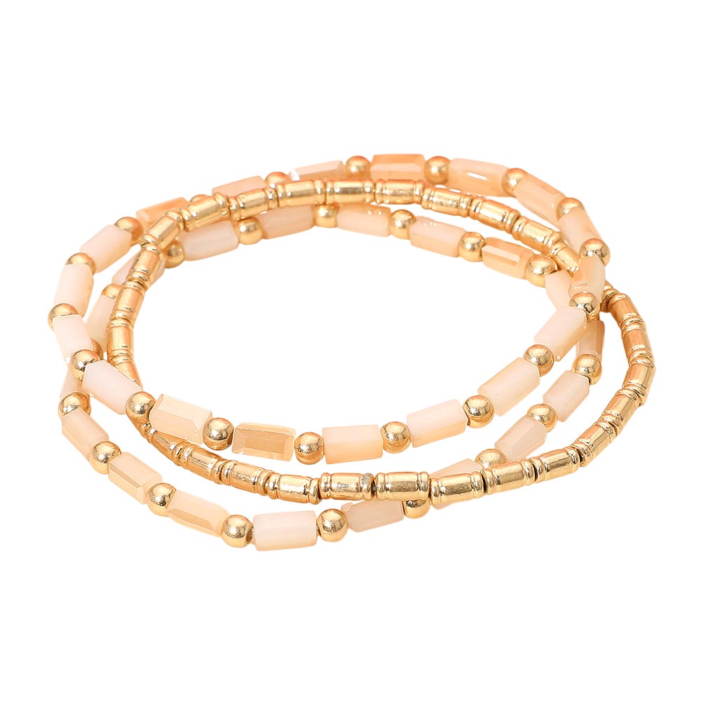 3PCS - Faceted Tube Beaded Stretch Multi Layered Bracelets