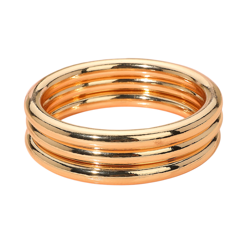 Details • Size : 0.9" H, 2.75" D • Sleek triple bangle set with a high-shine finish. These solid, smooth bracelets add a bold accent to your outfit and can be worn stacked or individually for versatile styling. Ideal for casual or dressy wear. • Lead and Nickel Compliant