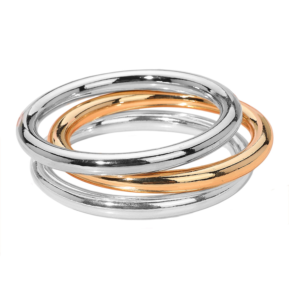Details • Size : 0.9" H, 2.75" D • Sleek triple bangle set with a high-shine finish. These solid, smooth bracelets add a bold accent to your outfit and can be worn stacked or individually for versatile styling. Ideal for casual or dressy wear. • Lead and Nickel Compliant