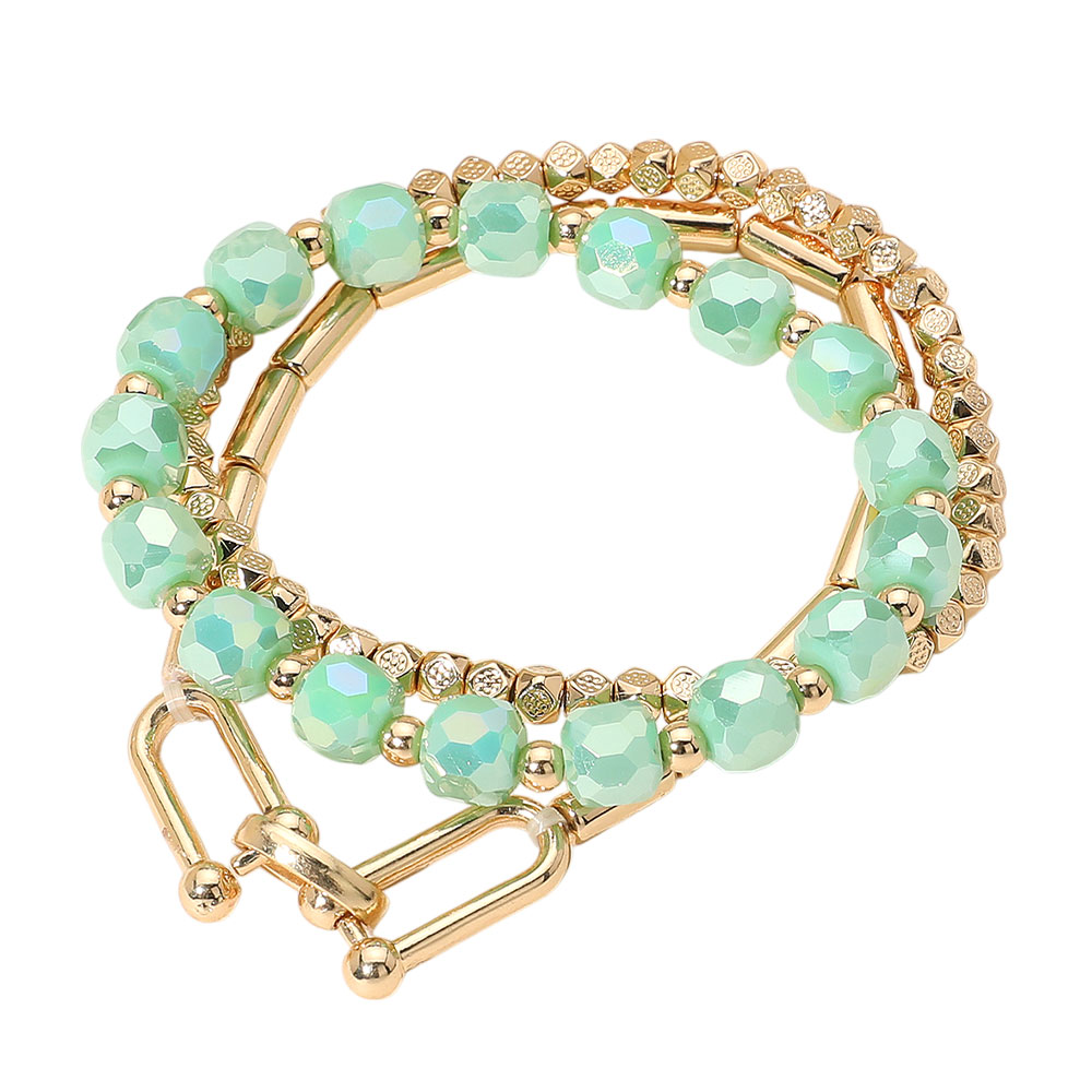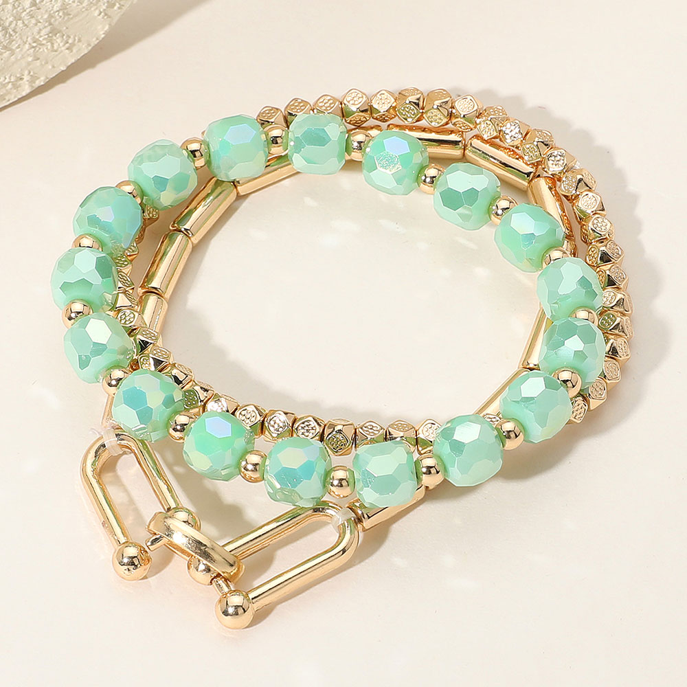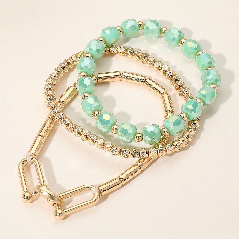 3PCS - Hardware Textured Metal Faceted Beaded Stretch Multi Layered Bracelets