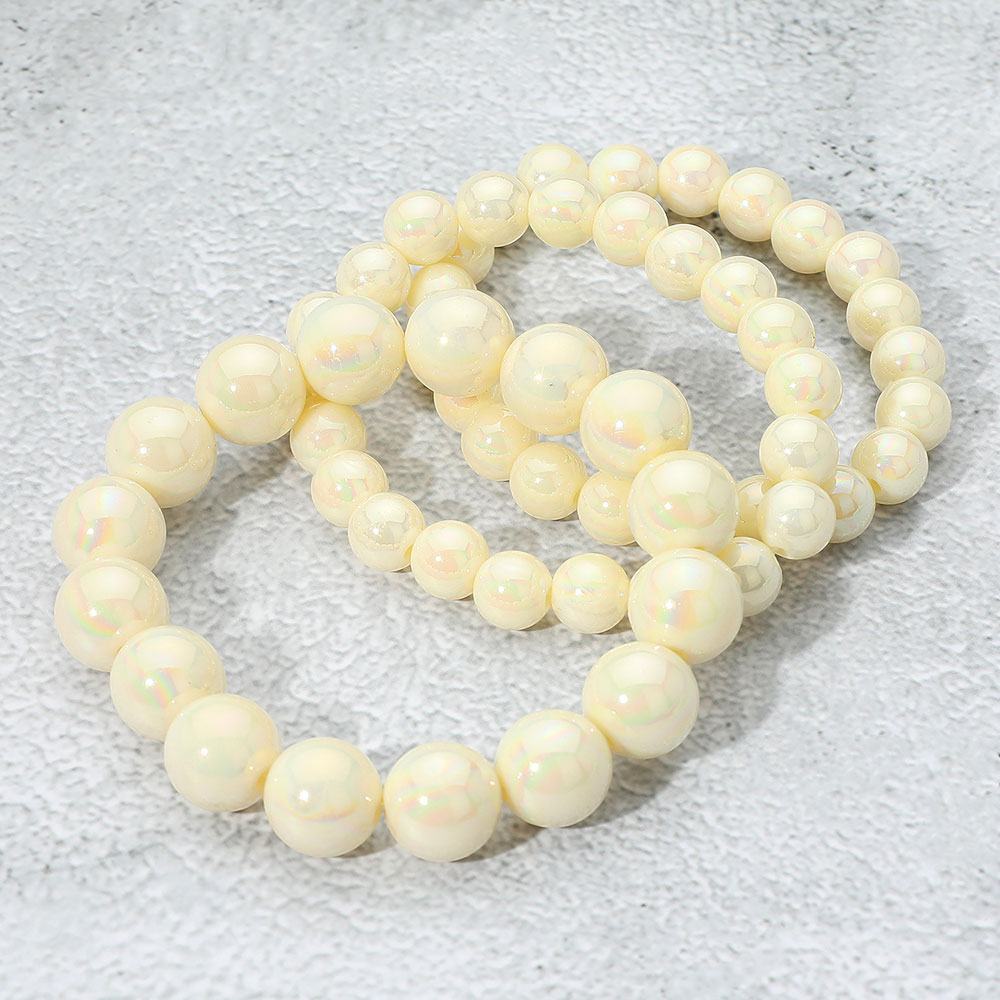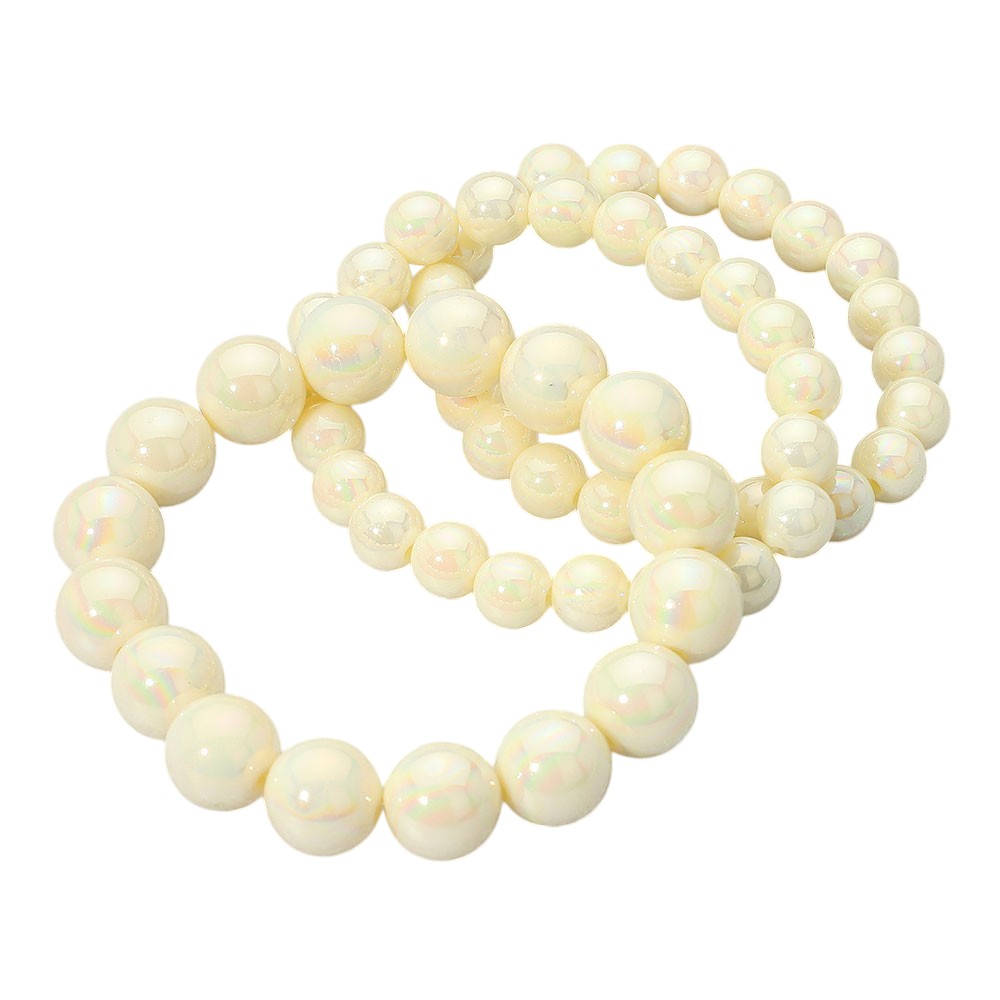 Details • Size : 1.25" H • Stretchable • Trio of stretch bracelets featuring glossy round beads in graduated sizes. These lightweight, stackable bracelets add a soft, polished finish to any outfit—ideal for everyday wear or layering styles. • Lead and Nickel Compliant