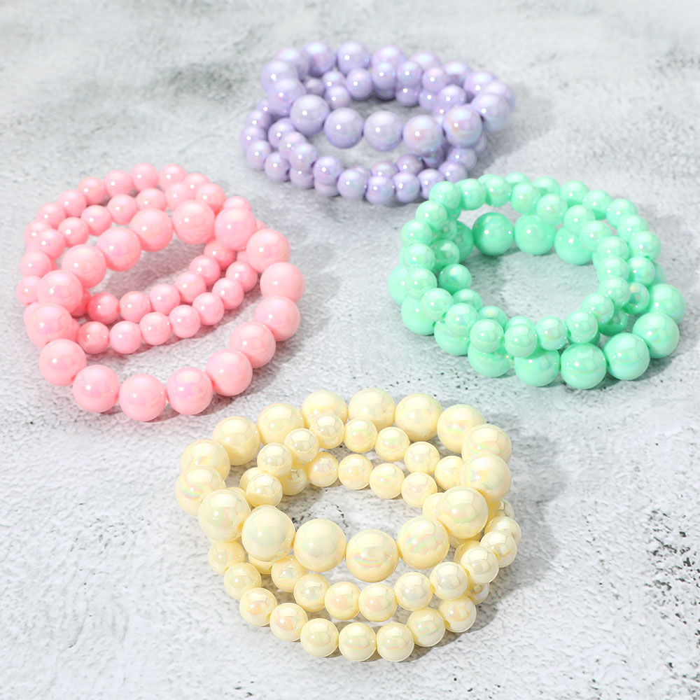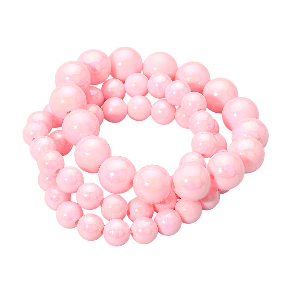 • Trio of stretch bracelets featuring glossy round beads in graduated sizes. These lightweight, stackable bracelets add a soft, polished finish to any outfit—ideal for everyday wear or layering styles.