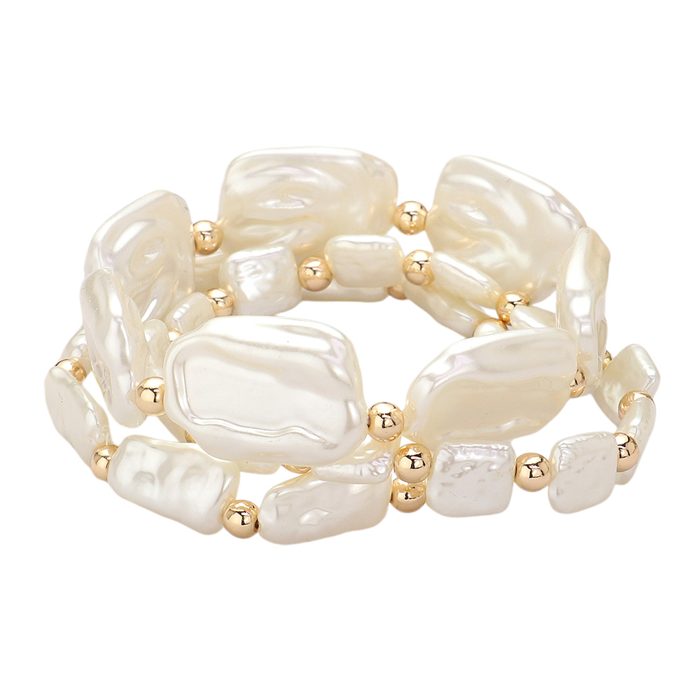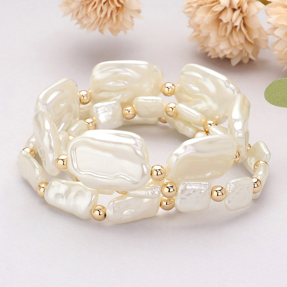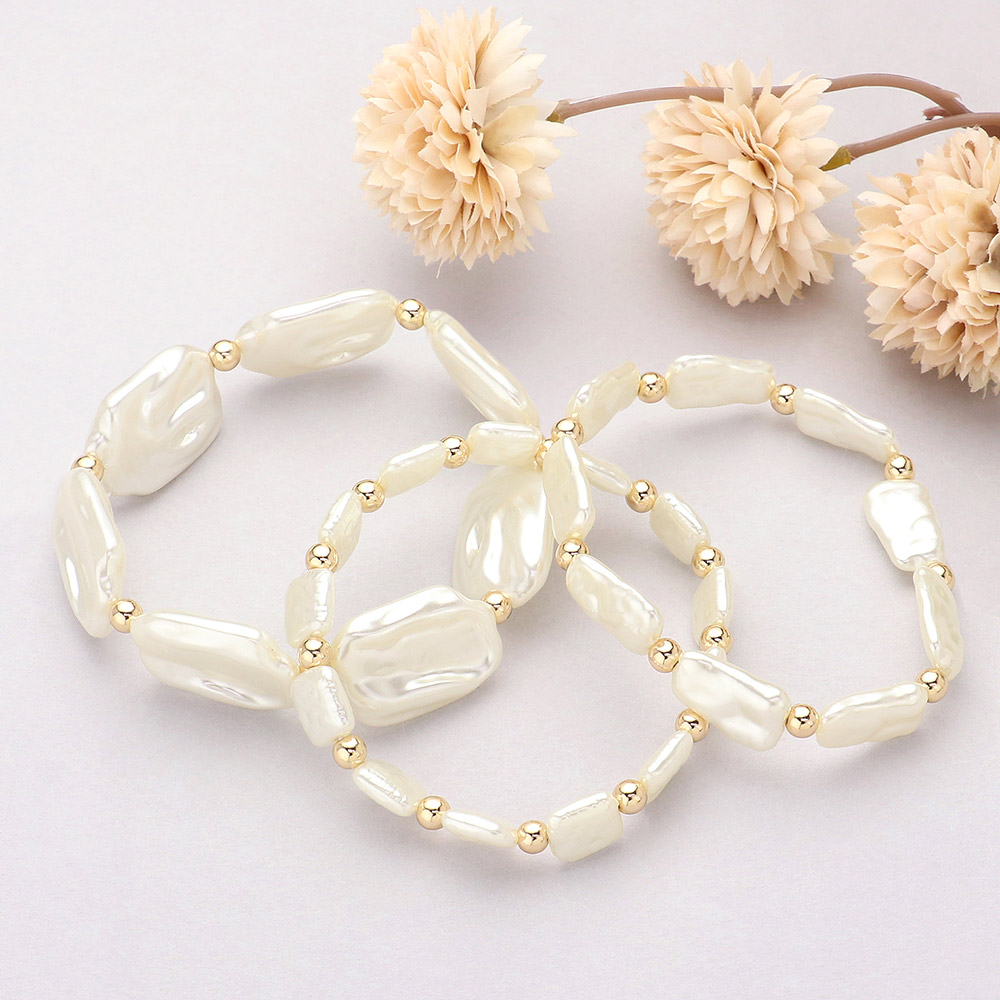 3PCS - Irregular Pearl Beaded Stretch Multi Layered Bracelets