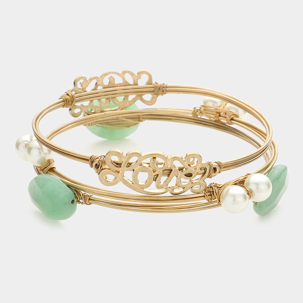 LIVE LAUGH LOVE Message Pendant Accented Beads Stretch Bracelet