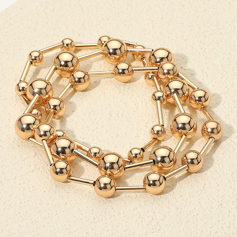 3PCS - Metal Ball Bar Beaded Stretch Multi Layered Bracelets