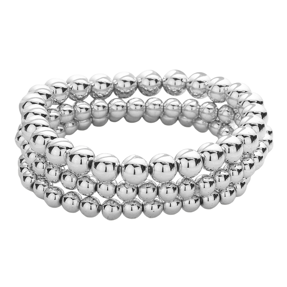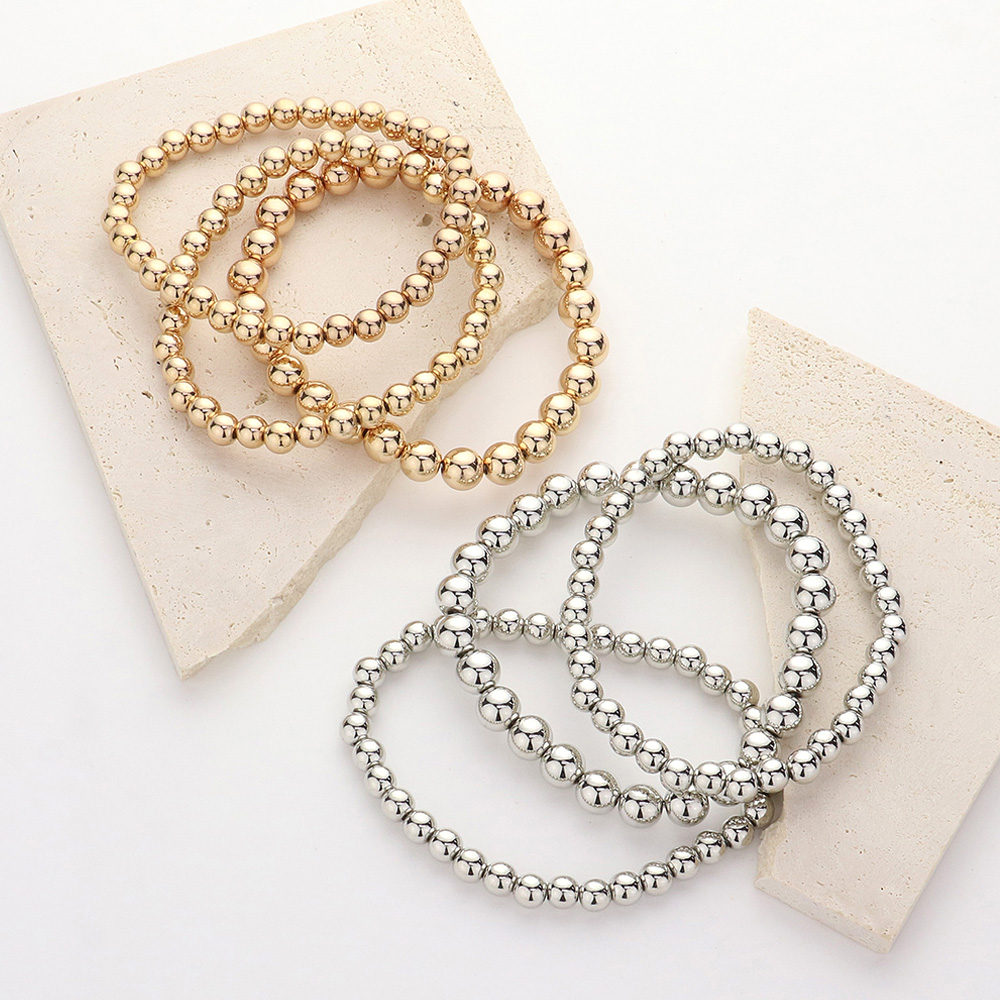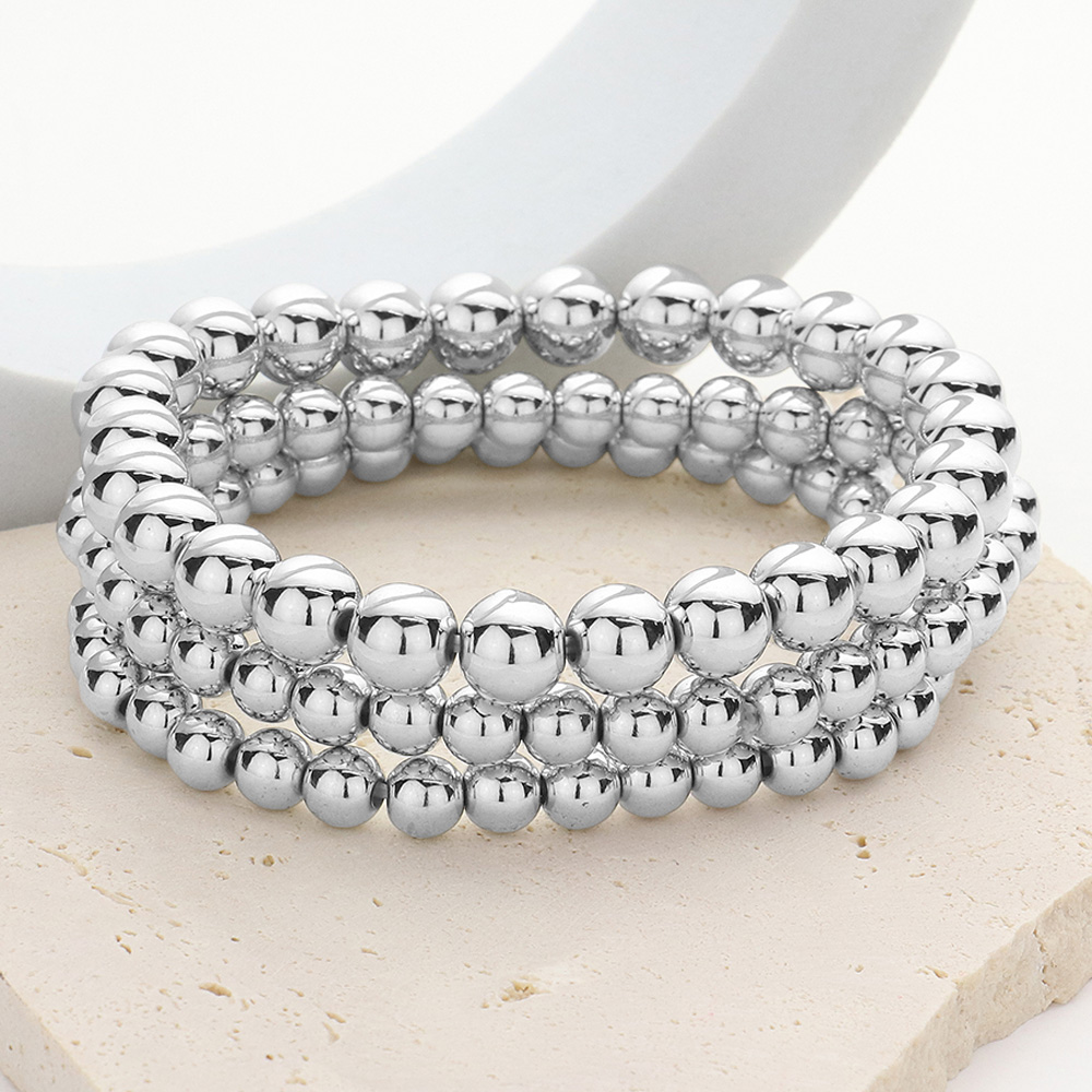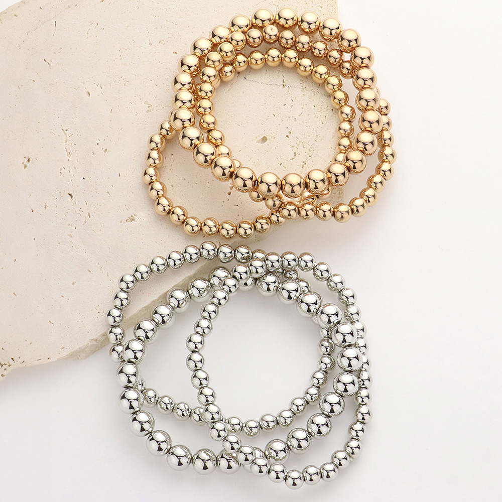 3PCS - Metal Ball Beaded Stretch Multi Layered Bracelets