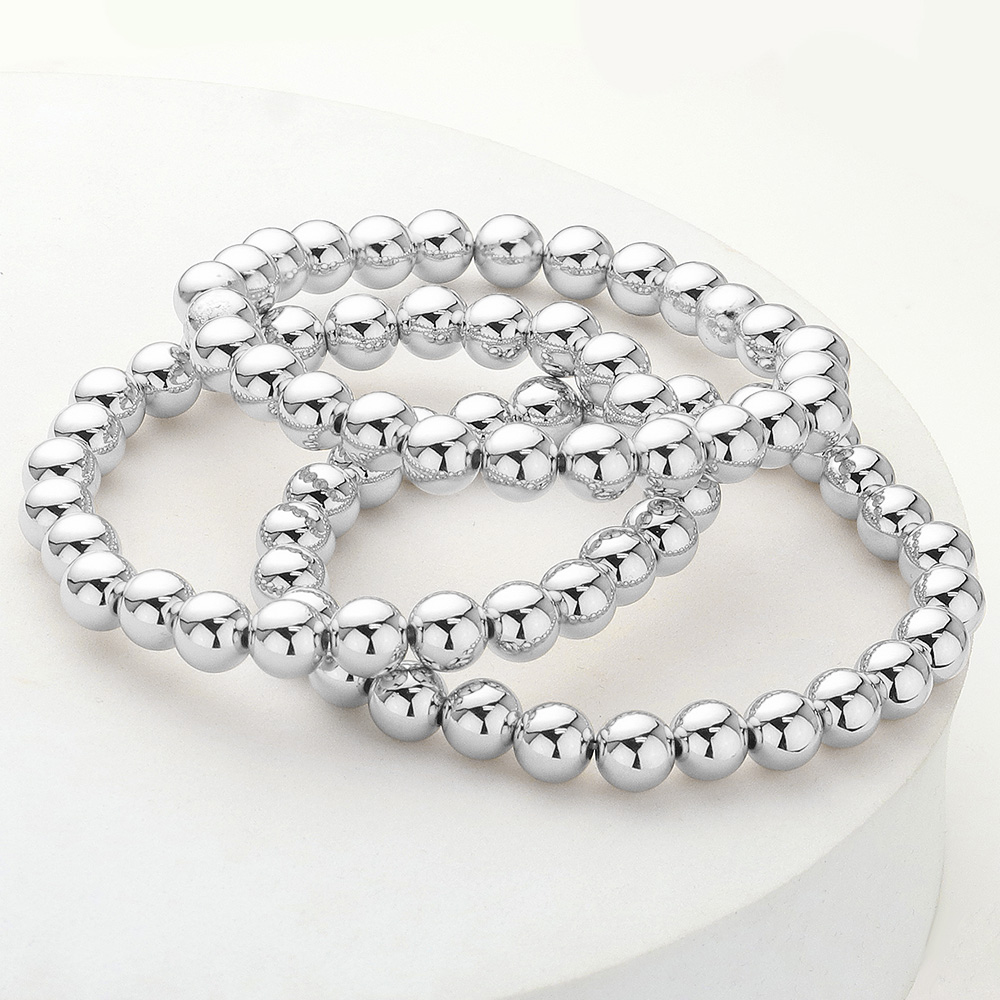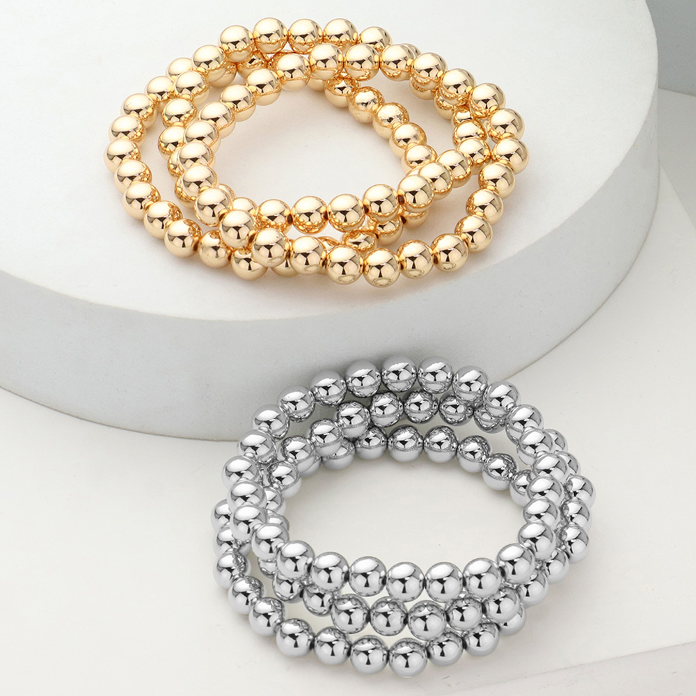 Details • Size : 0.8" H • Stretchable • Chic triple row stretch beaded bracelet crafted for modern style and comfort. Easy to stack or wear solo, this timeless accessory adds a polished and versatile touch to casual or dressy looks. • Lead and Nickel Compliant