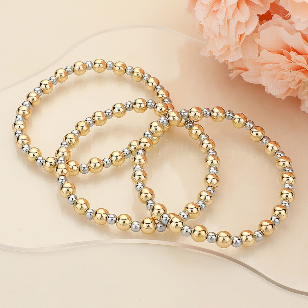 3PCS - Metal Ball Beaded Stretch Multi Layered Bracelets