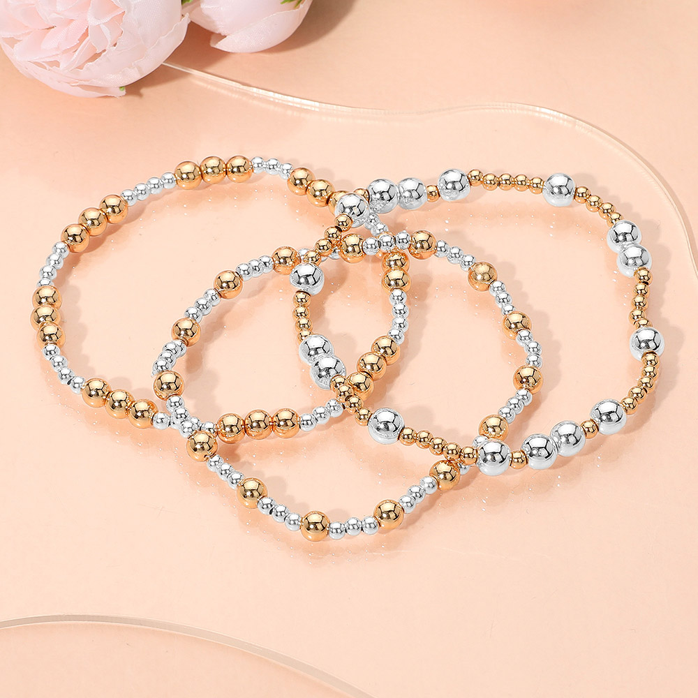3PCS - Metal Ball Beaded Stretch Stackable Multi Layered Bracelets