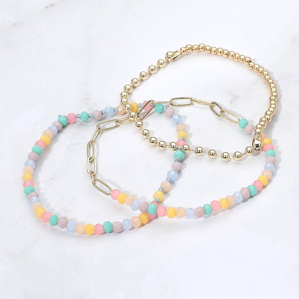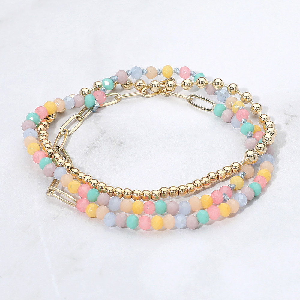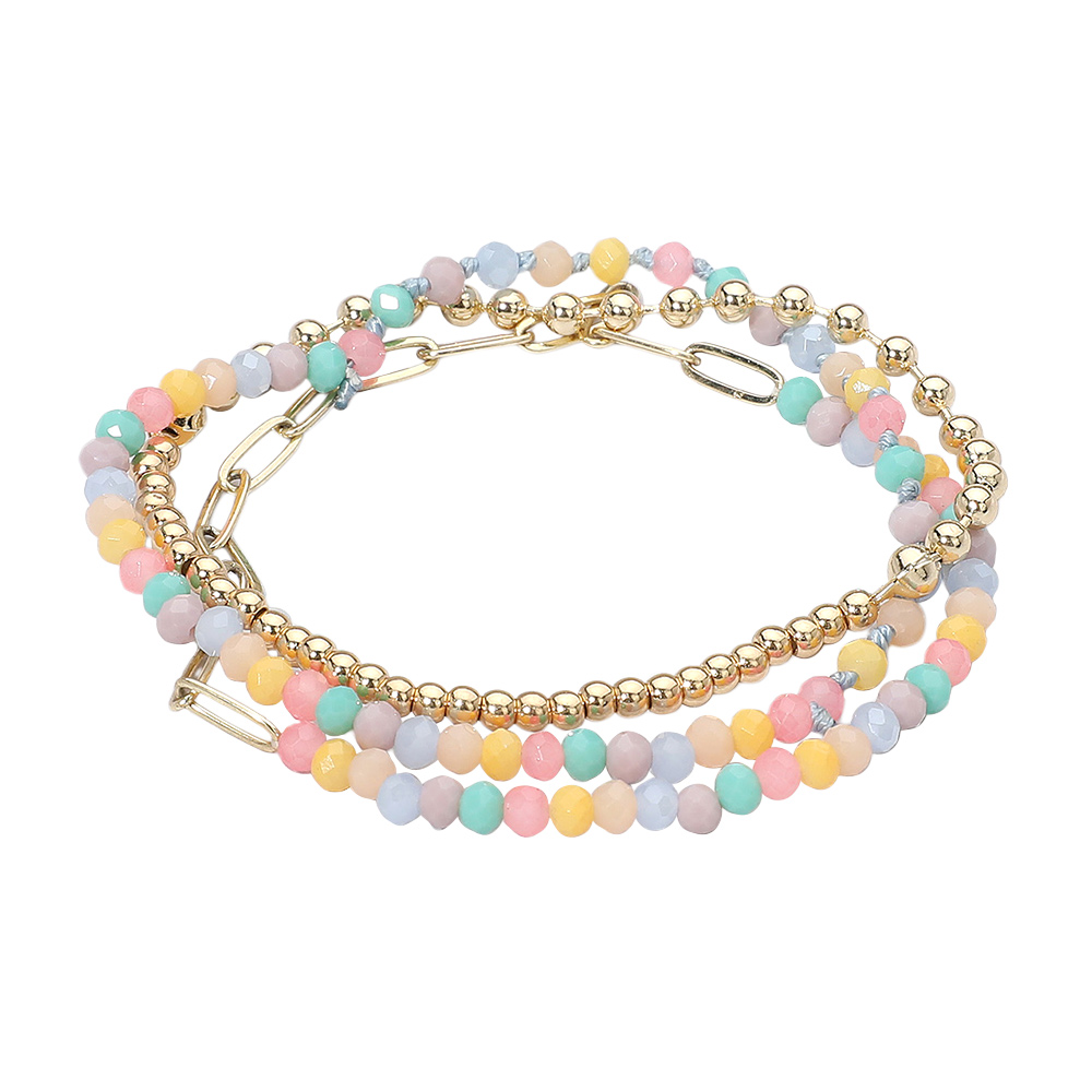 3PCS - Metal Ball Faceted Beaded Paperclip Chain Stretch Multi Layered Bracelets