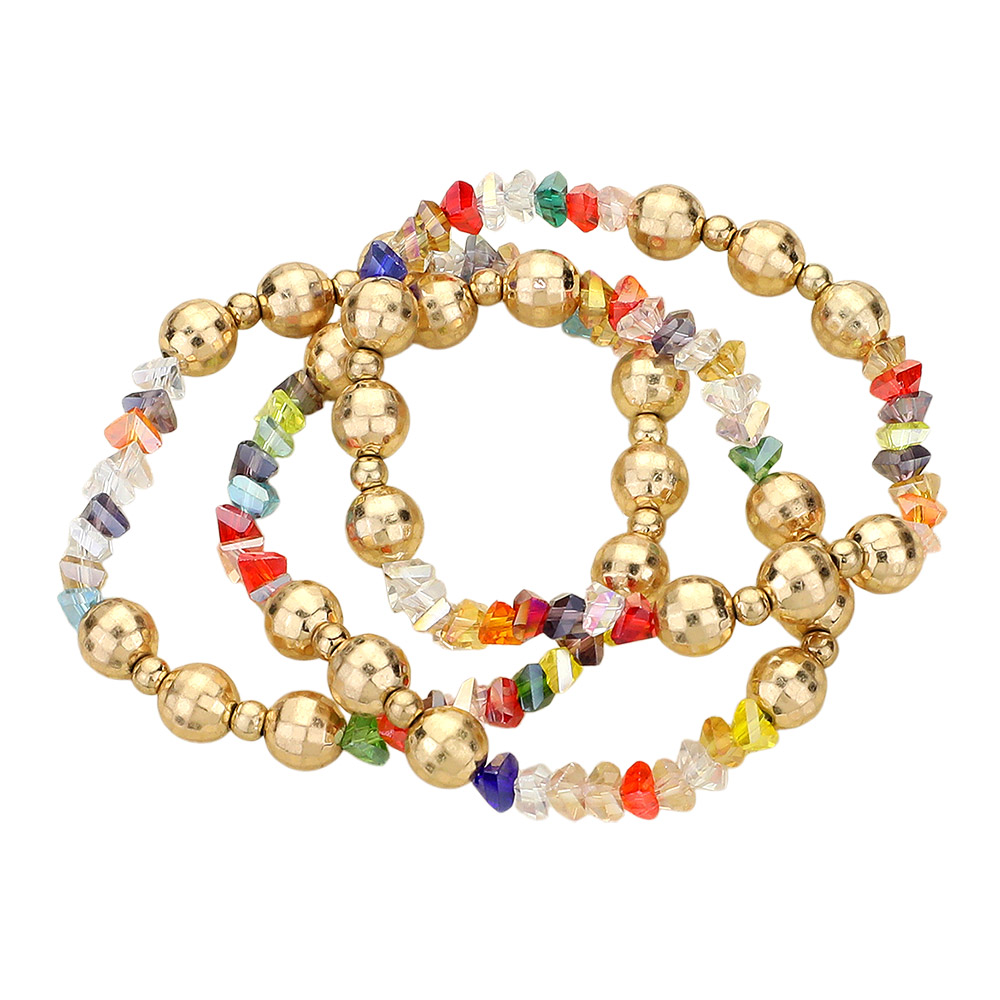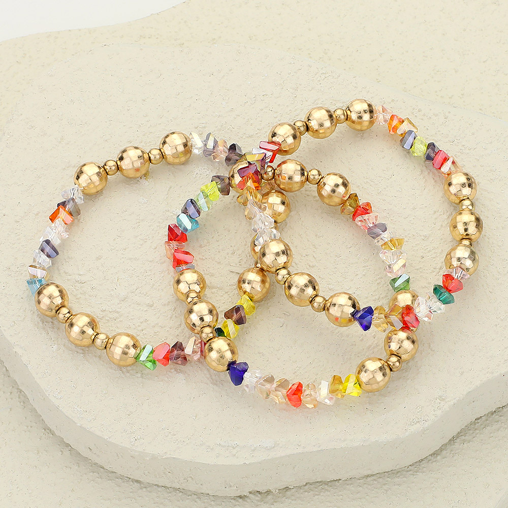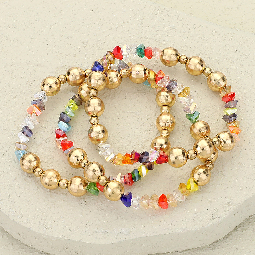 3PCS - Metal Ball Faceted Beaded Stretch Multi Layered Bracelets